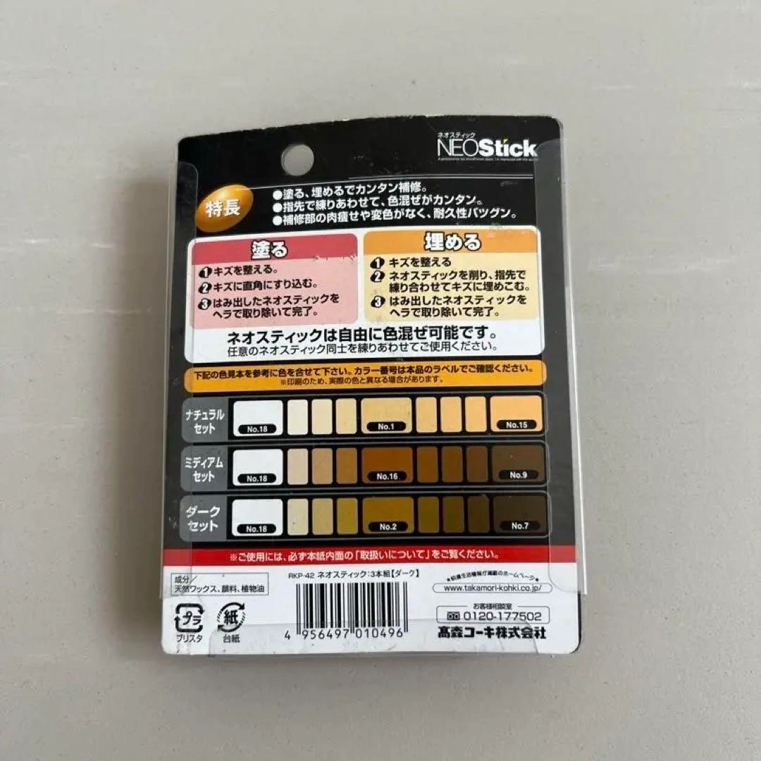2024年、Amazonで購入しました。 一度使い、倉庫保管。 ペット、タバコなし。 中古品としてご理解お願いいたします。 ※ナチュラルも出品してます。 木製家具の補修に最適なNEO Stick、3色セット。 - 商品名: NEO Stick - セット内容: 3本入り - 付属品: パテナイフ、ウエス - 色の種類: ダークセット - 使用方法: 傷を塗る、穴を埋める ご希望の方はお気軽にご連絡ください。
