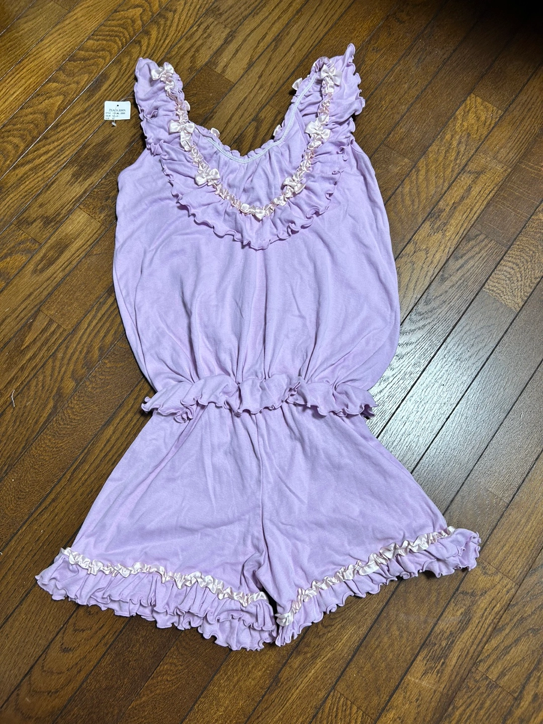 ご覧いただきありがとうございます😊 ピーチジョンのフリルリボン付きの可愛い部屋着です。 羽織りものロングソックスと合わせても可愛いと思います。 サイズ:S カラー:ラベンダー いただいた物なのですが、私には可愛いすぎて着用機会がなく保管しておりました。 ご着用いただける方にお譲りできればと思います。 自宅保管にご理解ある方ご検討いただければと思います。 ご質問等ありましたら、お気軽にご連絡くださ い。どうぞよろしくお願いします^ - ^
