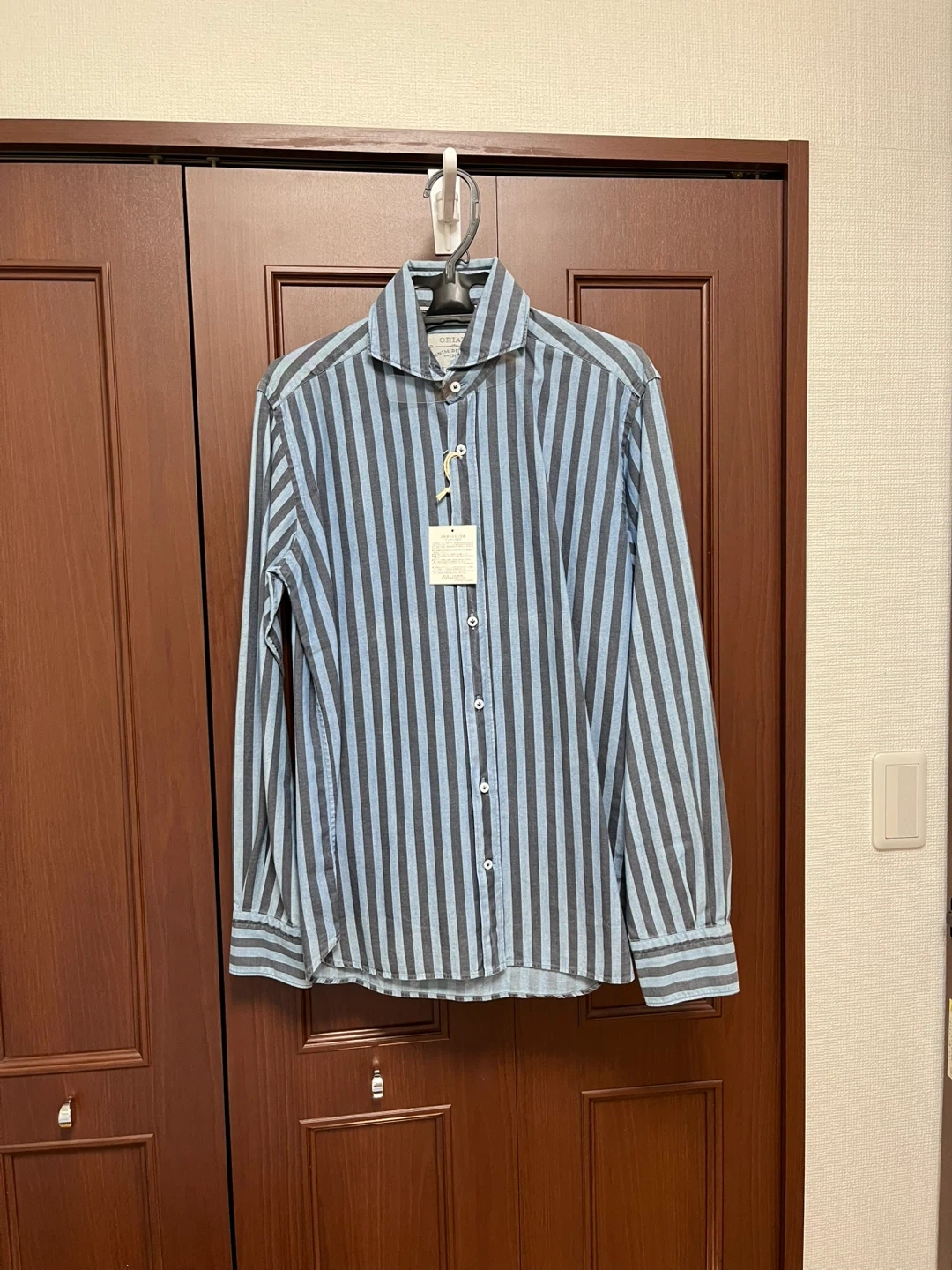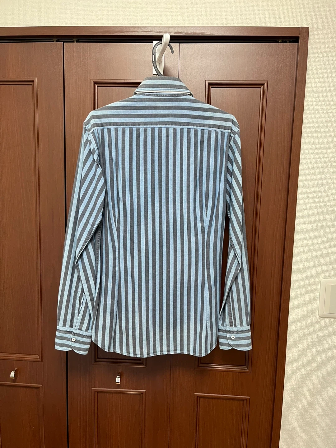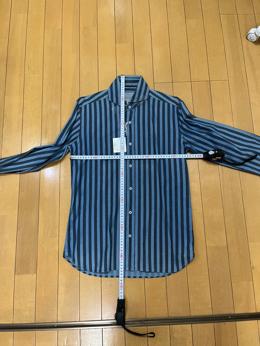 【未使用タグ付】 ORIAN シャツ ストライプ  購入後、埃よけしハンガー保管していた タグ・カラー付きの未使用品です。 サイズ S 実寸は写真を確認ください ※他にも格安で出品していますので、  是非ご覧ください。 以下、Gemini AIの説明です。 ORIAN(オリアン)は、イタリアを代表する高品質なシャツブランドです。その洗練されたデザインと快適な着心地から、日本でも多くのセレクトショップで取り扱われ、ファッション愛好家から高い支持を得ています。 ORIANのシャツが持つ主な特徴 ORIANのシャツは、その品質の高さと現代的な感覚を両立させている点に魅力があります。 • 「もう一枚の皮膚」と称される着心地 ブランドが最も大切にしているのが、ストレスを感じさせない快適な着心地です。肌に吸い付くようなフィット感と、動きやすさを計算されたパターンメイキングにより、まるで「第二の皮膚(セカンドスキン)」のような一体感を実現しています。 • 高品質な素材と美しいシルエット 使用される生地は、高品質なコットンやリネンなどを厳選。その上で、身体のラインを美しく見せるスリムフィットなど、現代的で洗練されたシルエットに定評があります。すっきりとした見た目ながら、窮屈さを感じさせない絶妙なバランスが特徴です。 • エレガントで美しい襟の表情 シャツの顔とも言える襟の作りは特筆すべき点です。柔らかく、エレガントな曲線を描く襟は、ネクタイを締めたときも、ノーネクタイでボタンを開けて着たときも、非常に美しい表情を見せてくれます。