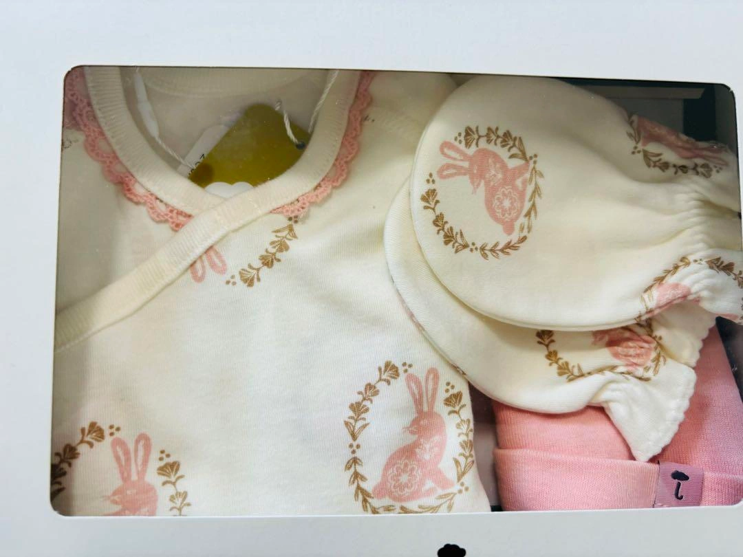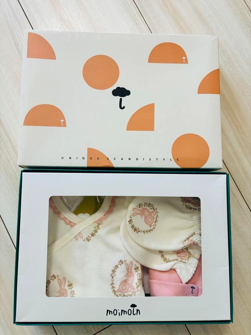 頂き物ですが、使用しませんでしたので出品します。箱に入れたまま自宅保管してました。新品未開封です。 ウサギのプリントが可愛い、綿100%のベビー服セット。 - ブランド: moimoln - デザイン: ウサギのプリント - 素材: 綿100% - 製造国: 韓国 - セット内容: 長袖トップス、ミトン、パンツ - 洗濯方法: 中性洗剤使用 ご覧いただきありがとうございます。 ご希望の方はお気軽にご連絡ください。