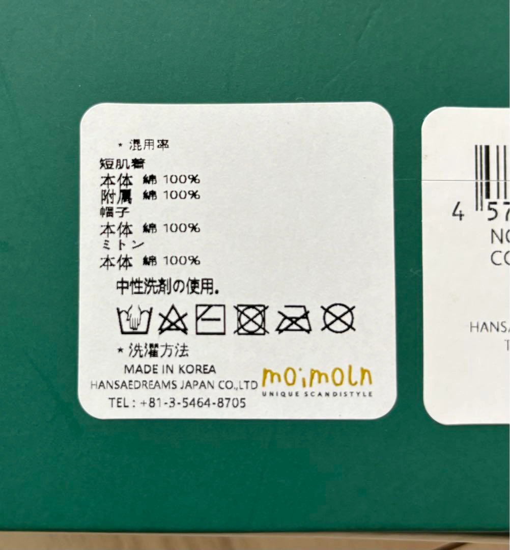 【未使用品】moimoln ベビー肌着、ミトン、帽子 3点セット 70cm