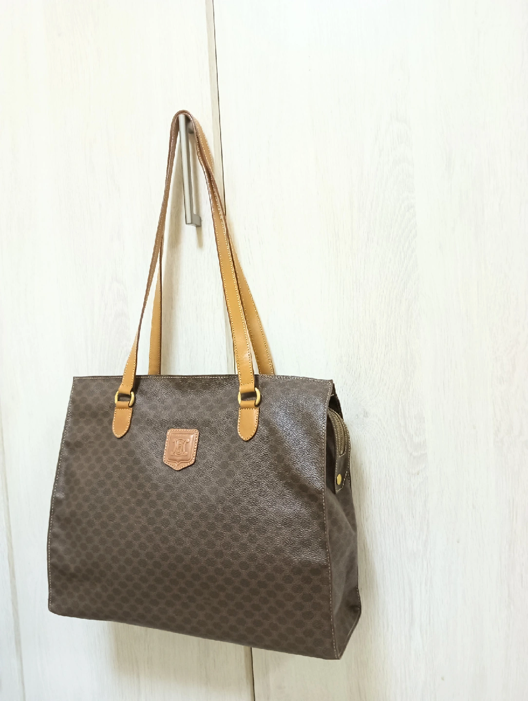 ★★ CELINE セリーヌ マカ ダム柄 ショルダートートバッグ モチロン内側タグ裏にシリアル有り。 ファスナーフラップ付き ★★ セリーヌのアイコン的なマカダム柄のショルダートートバッグです。 ヴィンテージでも未使用近い非常に綺麗な状態を保っております。 容量も有り受け口ファスナーフラップ付きなので重宝します。 ★★ size 約38cm × 31cm マチ約12cm color ブラウン系マカダム柄 現物のみとなります。