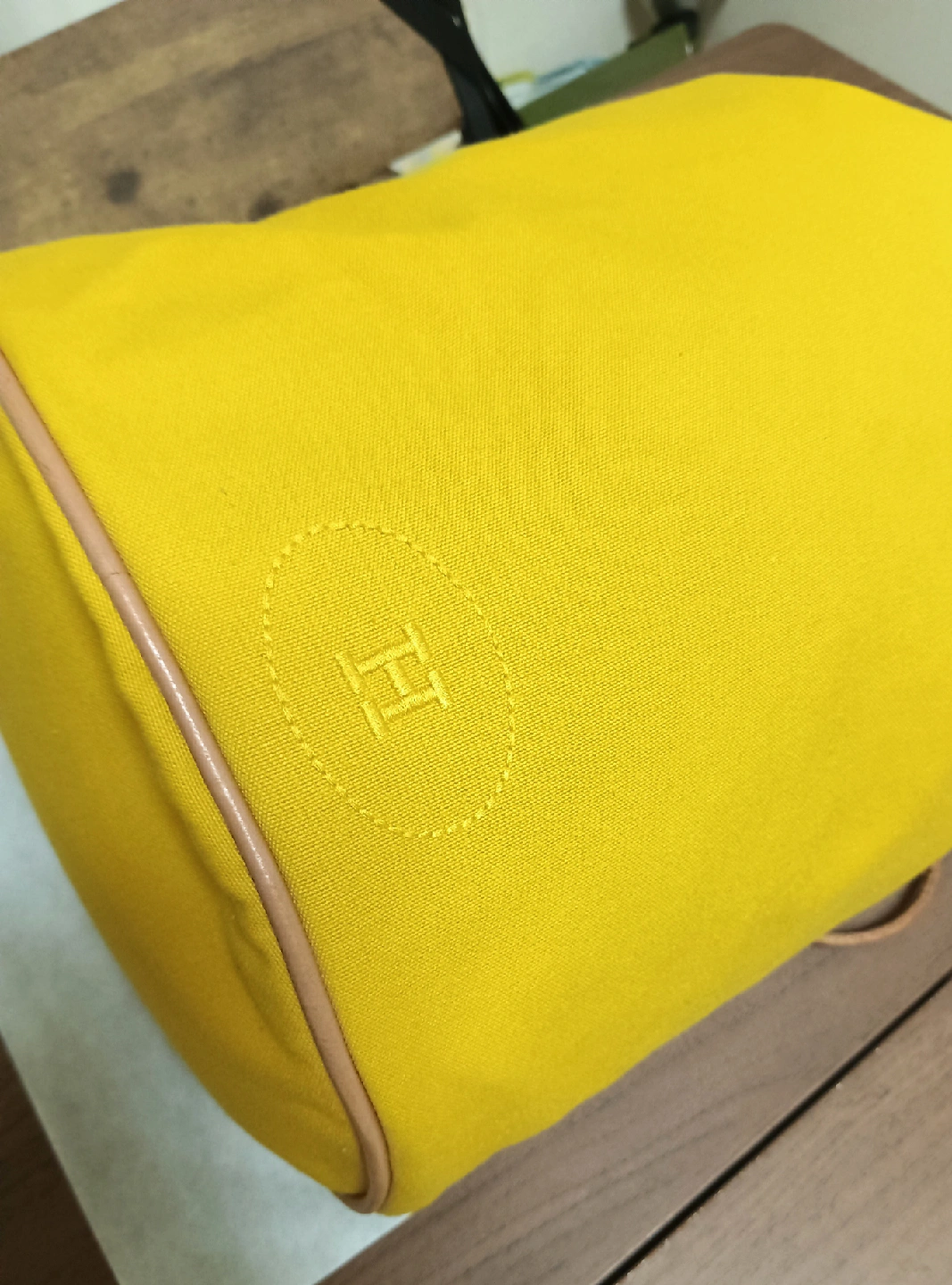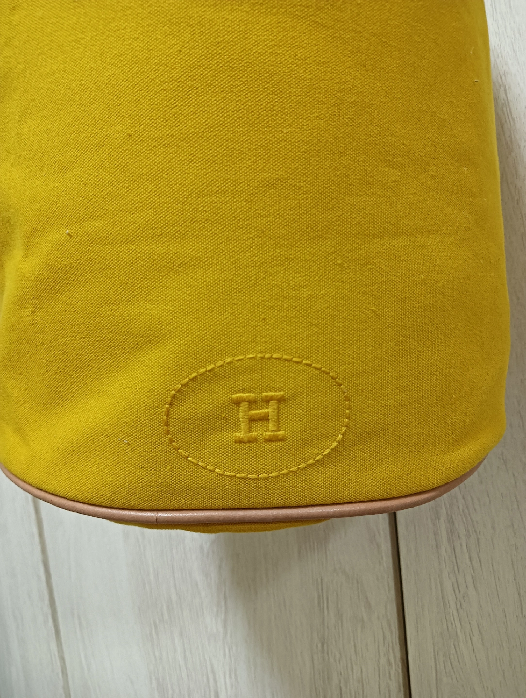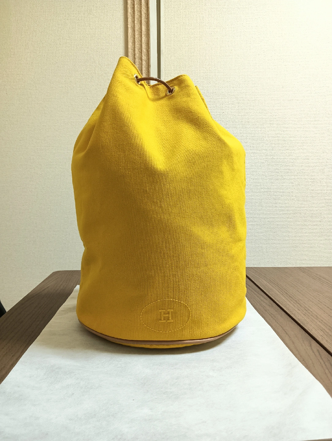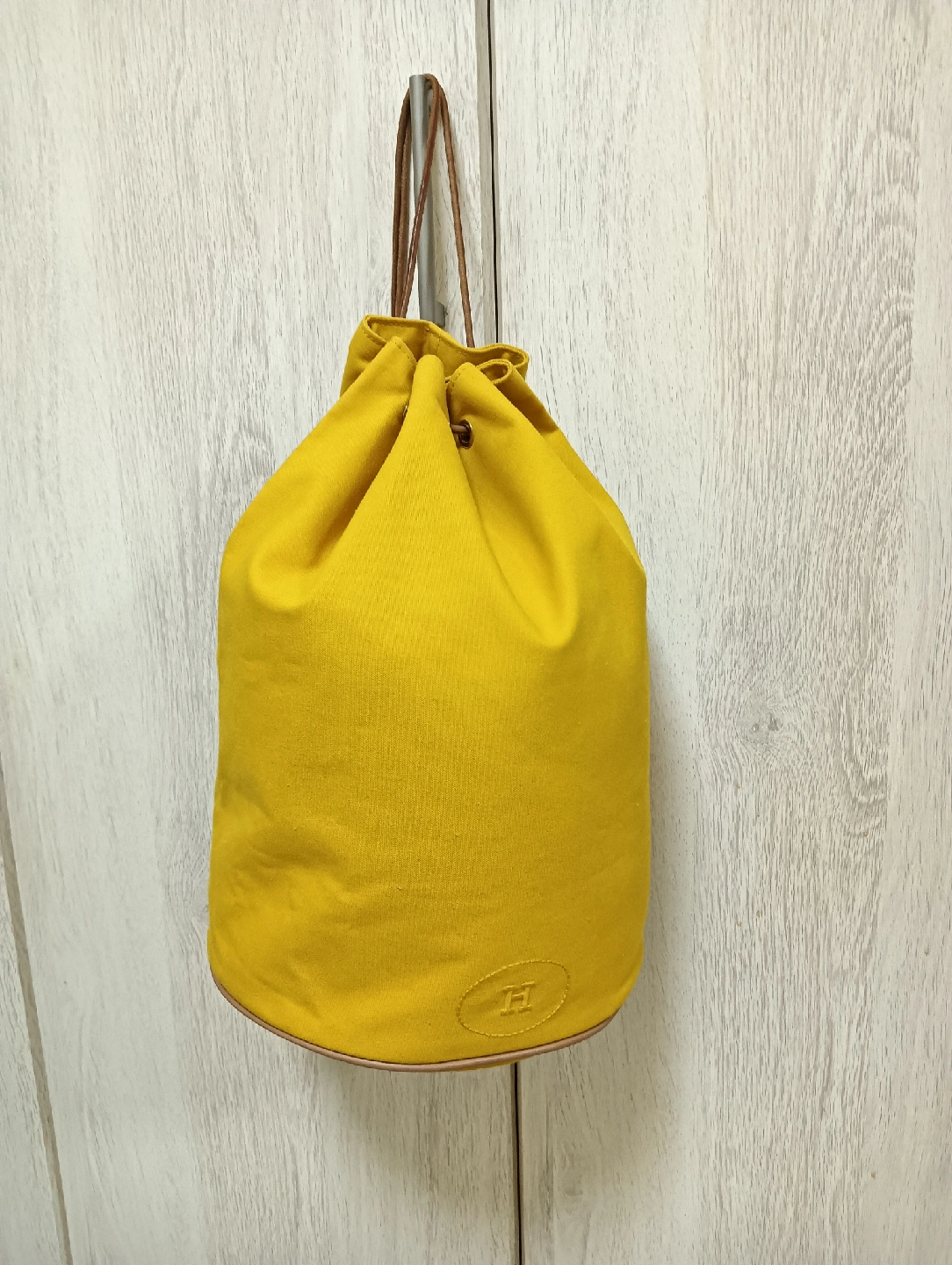★★ HERMES エルメス ポロションミルル GM ドローストリング ショルダーバッグ ★★ HERMESのポロションミルル キャンバス生地&レザーストラップの ドローストリング ショルダーバッグです。 HERMESのH刺繍がさり気なく施されたバッグですね。 ★★ こちらも写真の通り全体的にも非常に綺麗な状態ですが、2回程度使用してます。 ★★ size 約36×25cm マチ約18cm color マスタード ★★ HERMESのHの刺繍が施されたドローストリング式ショルダーバッグです。