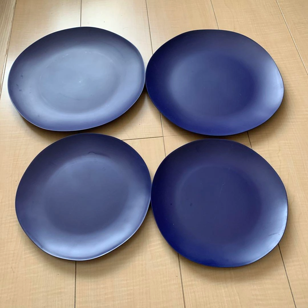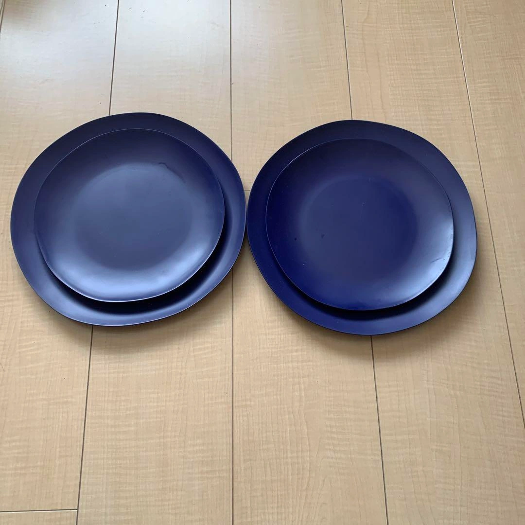 【未使用】クレート&バレル プレート皿大小各2枚 家族の人数分以上のプレート皿を未使用のまま保管していたので、この度整理のタイミングで出品します。 とても薄い樹脂製の素材でできており、丈夫で食洗機利用可能です。 素材···プラスチック/樹脂 形···プレート皿 大皿 直径約26.5cm 高さ約2.5cm 中皿 直径約21.5cm 高さ約1.5cm ご希望の方はお気軽にご連絡ください。