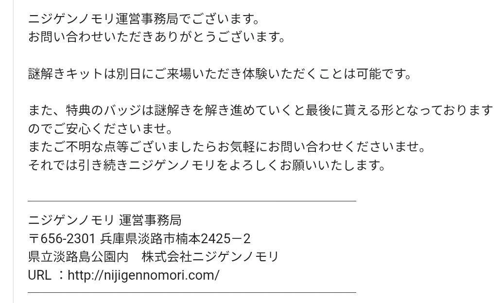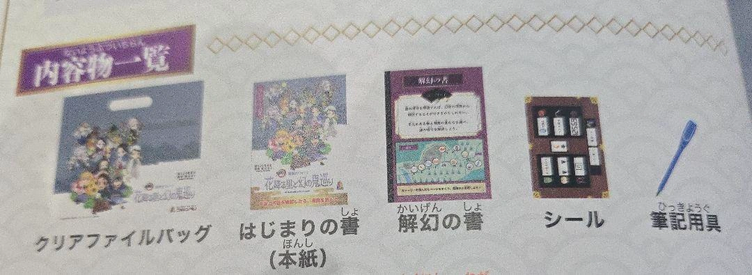 淡路島ニジゲンノモリで遊べる、昼限定の謎解きウォークセットです。内容物は全て揃っています。 未使用ですが中身確認のため、ファイルバッグから一度出しております。 購入したものの時間がなく遊べなかったのでお譲りいたします。 運営に問い合わせたところ、別日でもキットを使えるとのことです!(3枚目写真あり) バスで行くと受付まで坂道を10分ほど歩くのですが、その間にも謎があるので最初から冊子を持っておくと楽かもしれません! 受付では聞かなくてはならない説明はなかったので、終了時間だけ注意すれば大丈夫です! 営業時間→10:00~17:30 - 内容物: クリアファイルバッグ(切り取るとクリアファイルになります)、はじまりの書、解幻の書、シール、筆記具 ※参加特典はクリア後に貰えます! - デザイン: キャラクターイラスト入り - 用途: イベント参加用グッズ 定価2000円 60~90分程歩いて謎を解くウォークラリーです! 歩きやすい靴、服装で鬼の謎に挑戦してみてください! ufotable描き下ろしオリジナルイラストの 鬼8体がエリア内に登場! エリア内にはニジゲンノモリ限定の商品もあります! ご希望の方はお気軽にご連絡ください。
