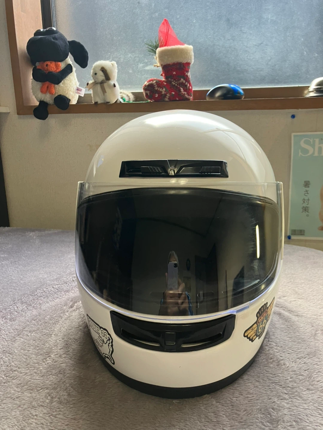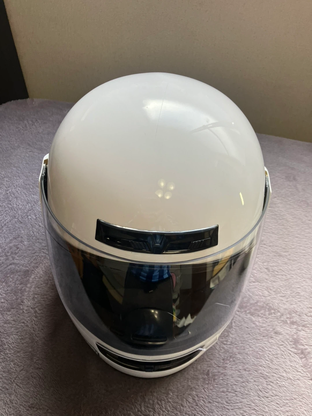 フルフェイスヘルメットです ・カラー:白 ・ステッカーが貼ってあります(ROUTE 66) ・内側にサイズ表記が見当たりません ・全体的にきれい サイズは57から60センチです。 安全規格はP S CとSGを取得しています。 新品で購入し、ステッカーチューンを施し、家の中で試着をしましたが、頭の形に合わなかったため出品します。 箱はありません。 半年位クローゼット保管だったので、その点をご了承ください。 自宅近辺まで取りに来てくださる方限定でお願いいたします。 事前にご連絡をいただければ曜日を問わず、11時から18時の間お引き渡しができます。