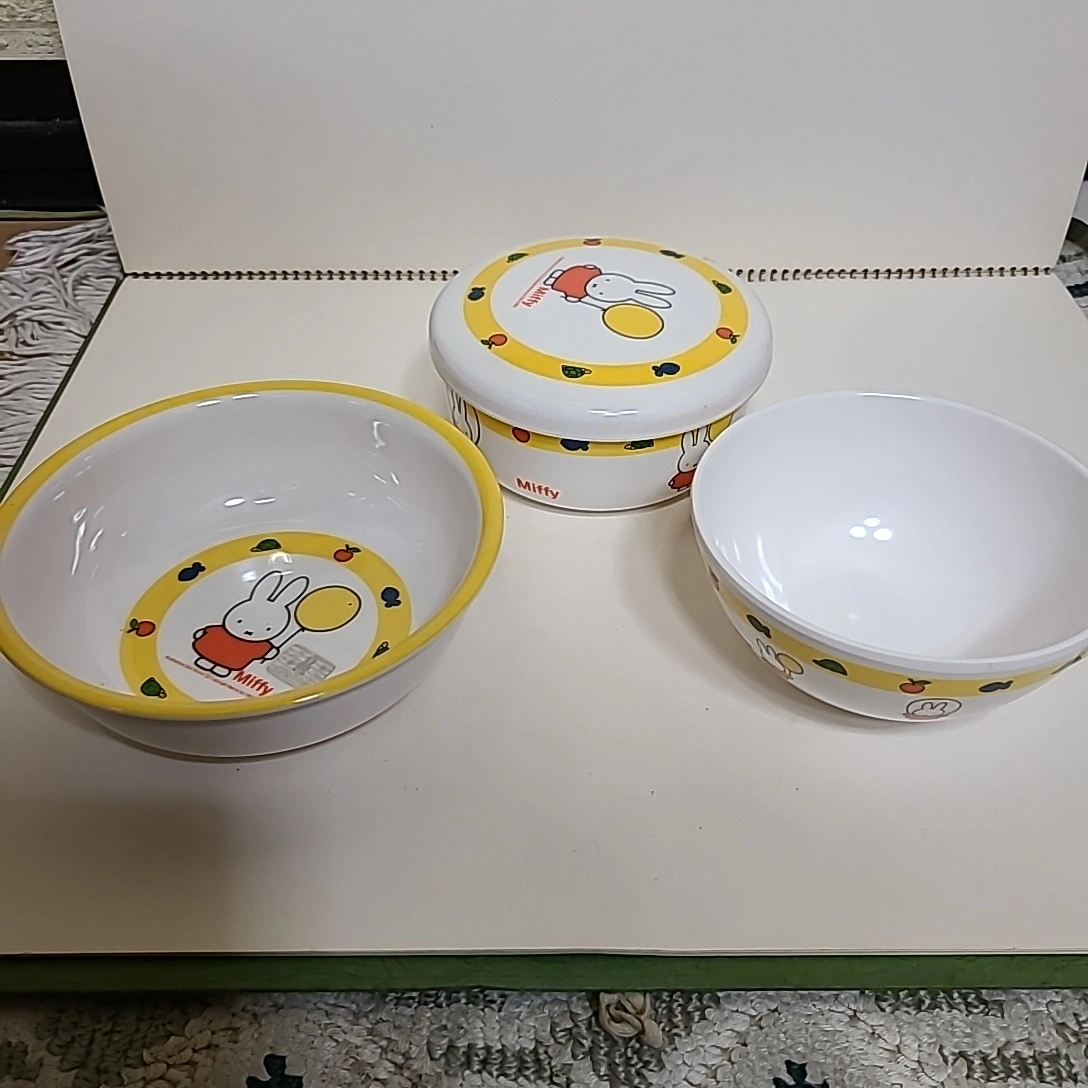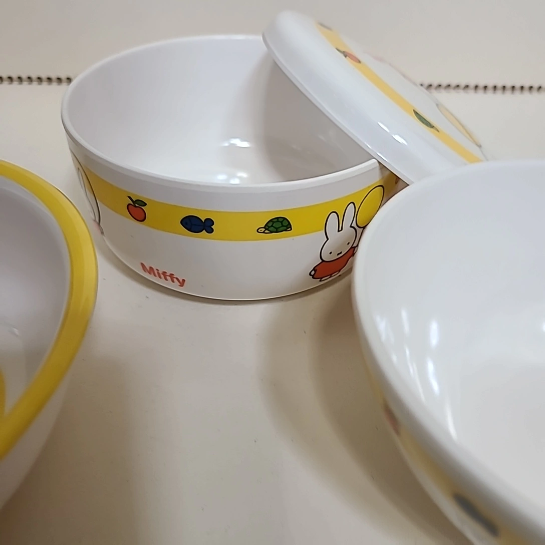 ミッフィーの食器セットです ・種類:ボウル、フタ付き容器 ・色:白、黄色 ・デザイン:ミッフィーのイラスト ・定価は3000円でした ・全体的にきれい 中古品であることご了承ください