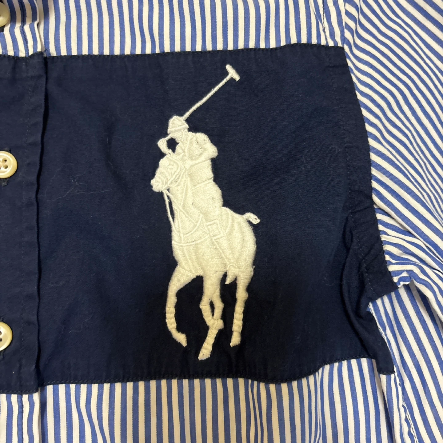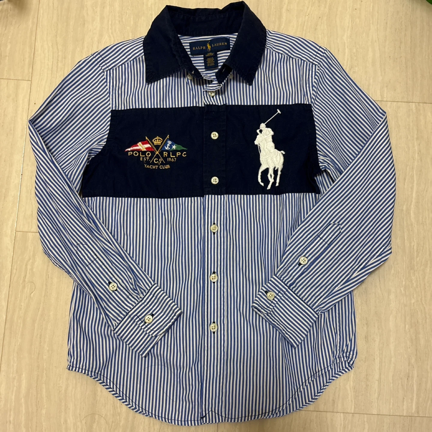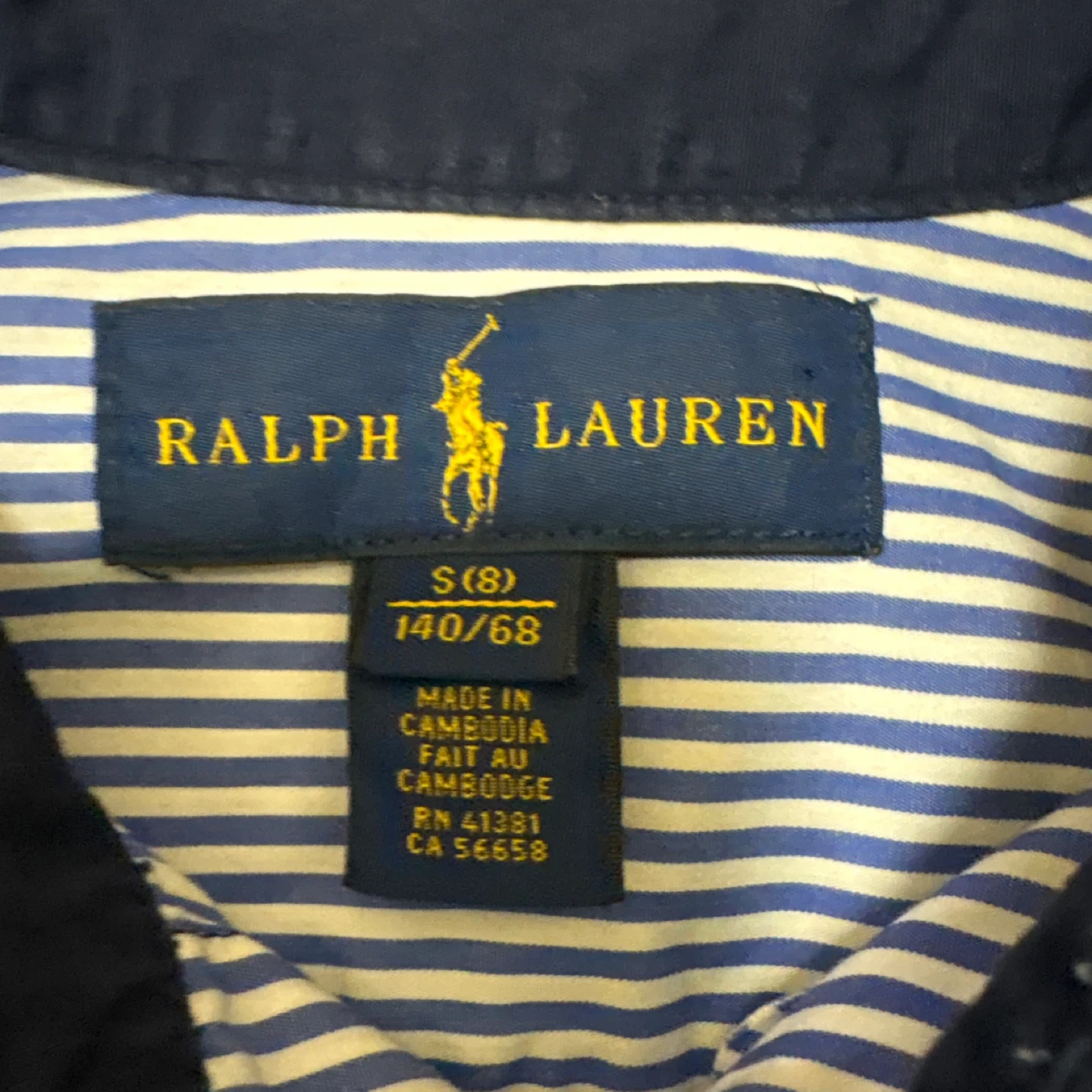 ラルフローレンのストライプシャツです ・ブランド:ラルフローレン ・サイズ:S(8)140/68 ・色:ブルーと白のストライプ 購入して自宅保管でした。 未使用です。