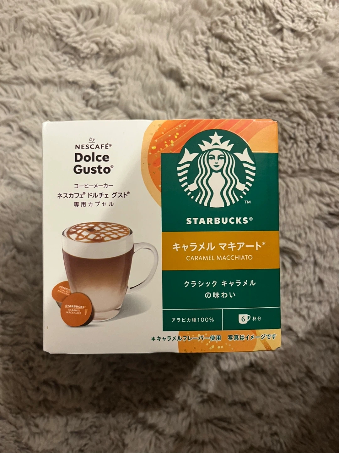 ドルチェグスト専用カプセルスターバックスのキャラメルマキアート未開封です。 以前購入したものを消費しきれない間に定期便で追加が来てしまったためお譲りしたいです。 【情報】 ブランド:スターバックス 種類:ドルチェグスト専用カプセル フレーバー:キャラメルマキアート 内容量:6杯分 【状態】 未使用 賞味期限:2026年3月 ドルチェグスト本体は付きませんので、本体お持ちの方やオフィスの方、ぜひどうぞ^_^