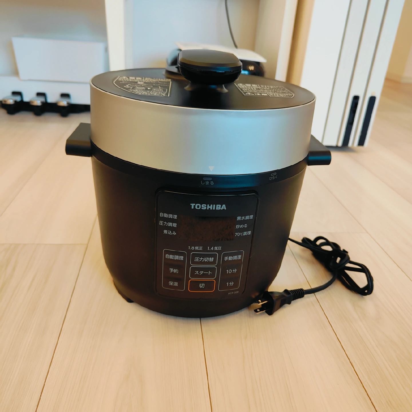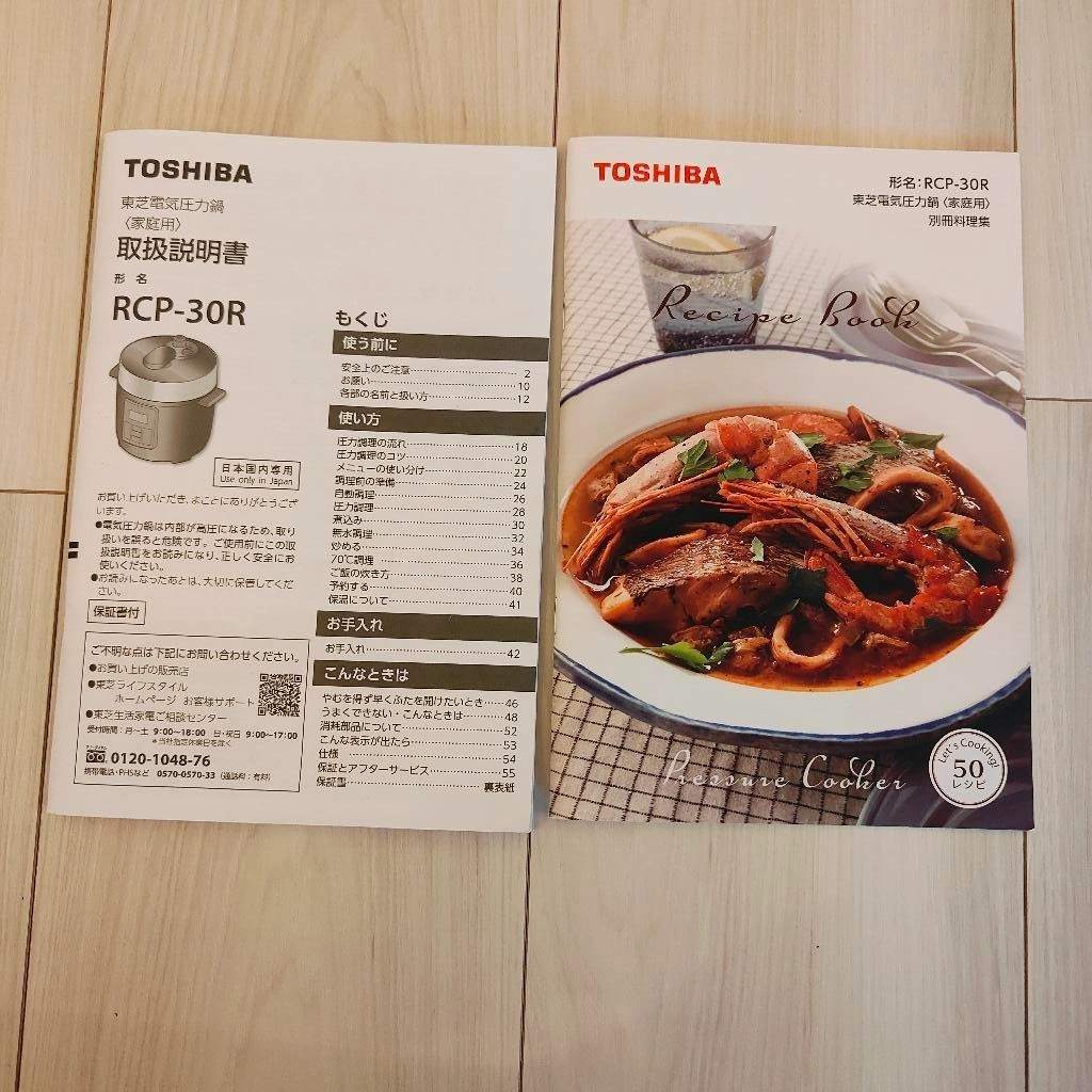 TOSHIBAの電気圧力鍋 RCP-30Rです。 数回使用しましたが、あまり使用しない為出品いたします。 比較的綺麗な状態です。 【ブランド】TOSHIBA 【品名】電気圧力鍋 RCP-30R (ブラック) 【商品の状態】目立った傷や汚れなし 【付属品】説明書、レシピブック 【カラー】ブラック系 【型番】RCP-30R 【容量】3.0L グリル鍋特徴:丸洗い可能 消費電力(W):700.0 W 色:ブラック系 コード長さ(m):1.0 m 質問は気軽にどうぞ^^ 中古品であることをご理解の上、ご購入お願いいたします。 取り引き場所を大新田公園にしておりますが周辺でしたら、可能なこともありますのでご相談下さい。