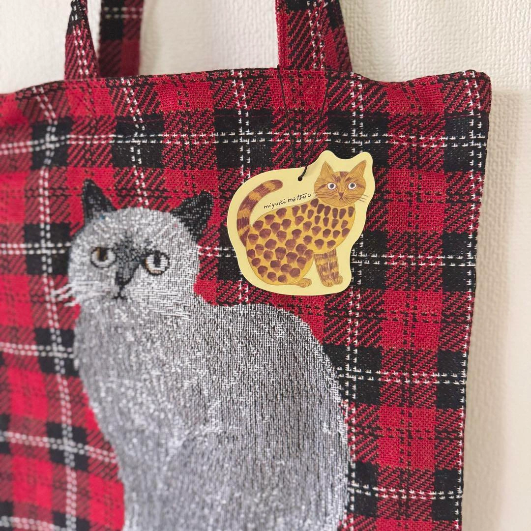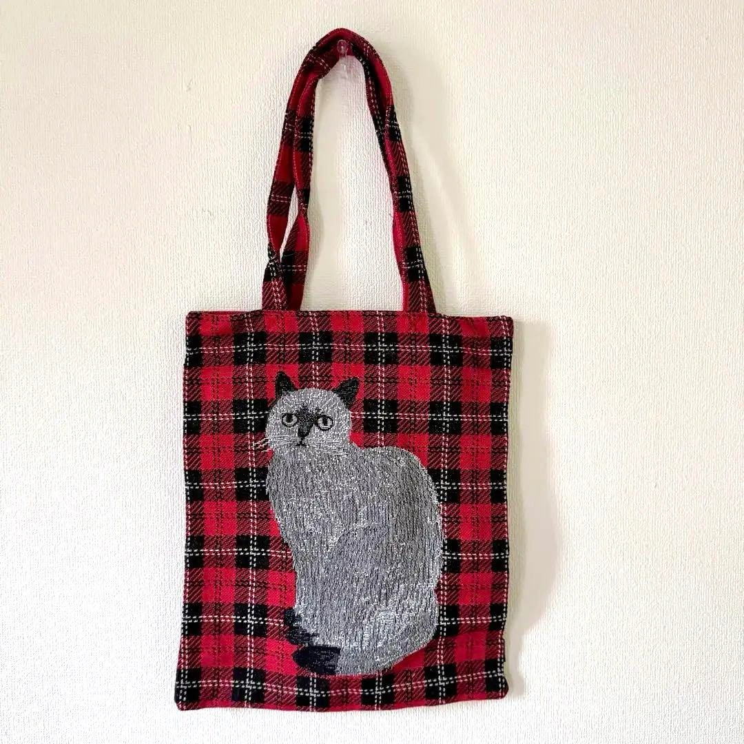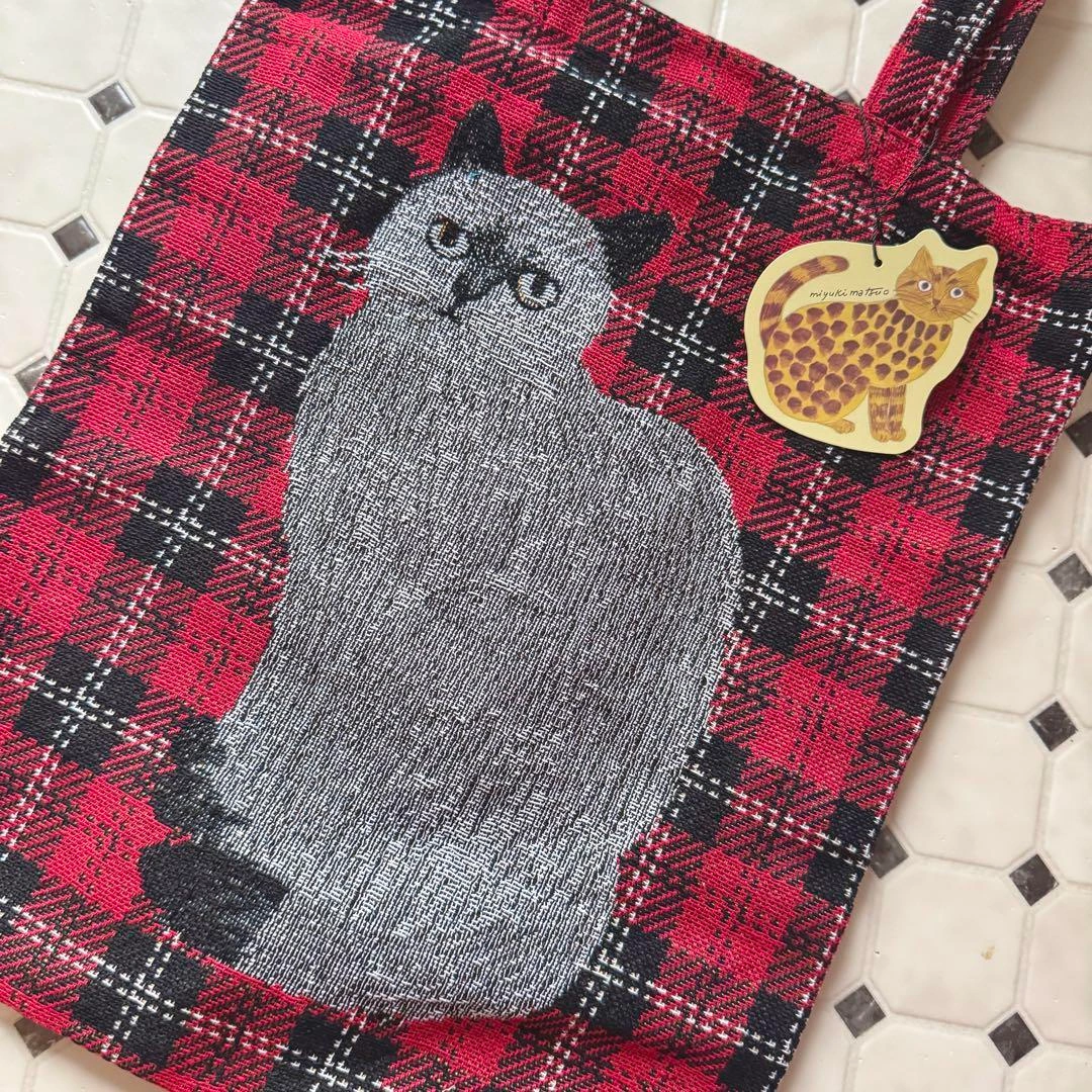 まつおみゆきさんの世界から飛び出してきたような、グレーの猫がこちらを見つめるトートバッグ。赤と黒のタータンチェックの背景に、ふわりと浮かび上がるその猫の姿は、どこか物語の一場面のよう。しんとした静けさの中に、柔らかなぬくもりを感じさせてくれます。 裏面には、小さな鉢に植えられたサボテンのモチーフが織り込まれています。シンプルでいて、日常の何気ない風景を愛おしく思わせるような表現が、まつおさんらしさを感じさせてくれます。 バッグ自体は、しっかりとした厚手の生地でできており、使い込むほどに味わいが増していきます。マチなしのすっきりとしたデザインながらも、日常のお出かけやお買い物にちょうど良いサイズ感。肩にも楽にかけられる長めの持ち手で、使いやすさも抜群です。 何気ない日々に、そっと寄り添ってくれるようなこのバッグ。まつおみゆきさんのやさしい世界観を、日常の中で感じてみませんか? サイズ32cm×37cm 素材ポリエステル71% 綿17% レーヨン8% ナイロン3% ポリウレタン1% 備考 ※表と裏で絵柄が異なります。 ※製造工程上、デザインのズレ、色ムラや織りムラがある場合がございます。 ※ネップが生地の表面に出ている場合がございます。ネップとは繊維が絡み合ってできた節(糸のかたまり)のことです。工程上避けられないものの為、良品の範囲内とさせていただきます。ご了承ください。 ※機械織りの為、商品到着時に多少油の臭いが残っている場合がございます。通常風通しの良い日陰に数日干していただくことで緩和されます。 ※手作業での縫製の為、商品毎にサイズが異なります。 ご希望の方はお気軽にご連絡ください。
