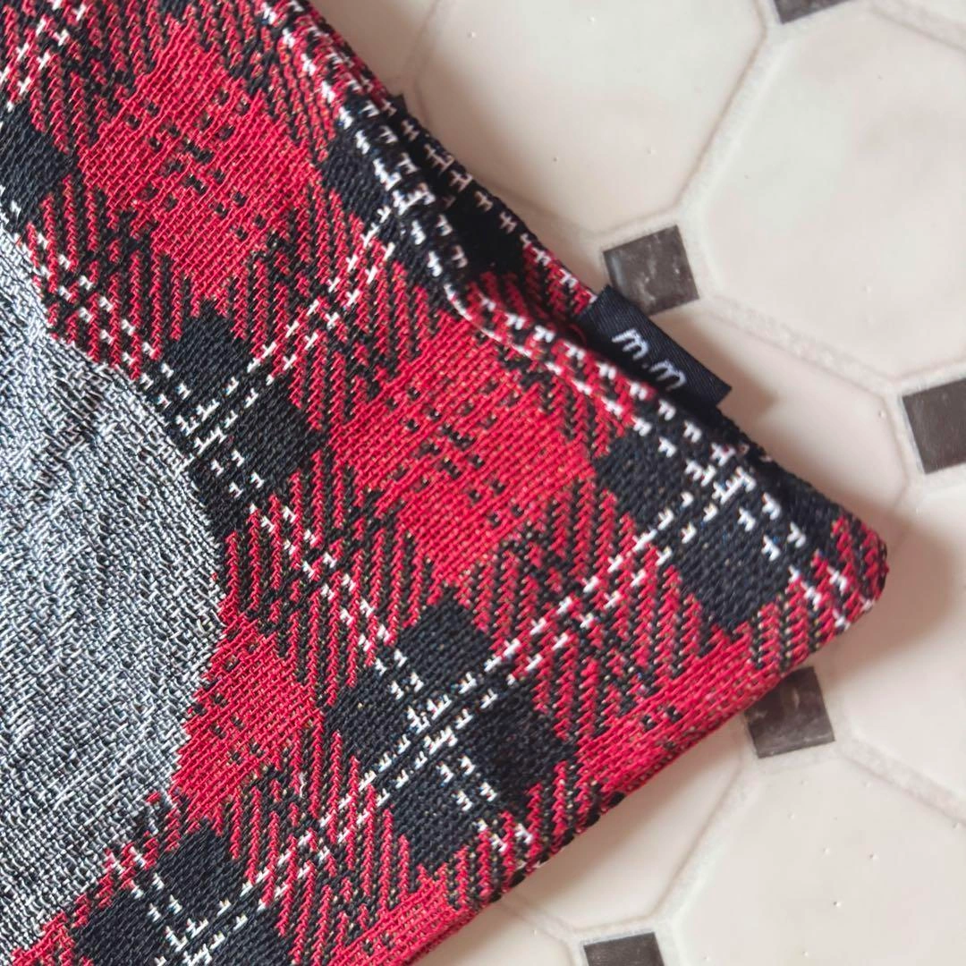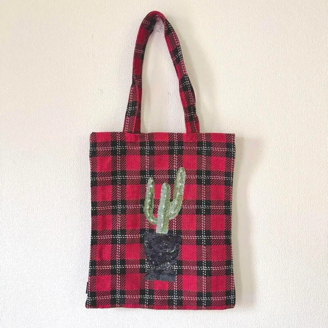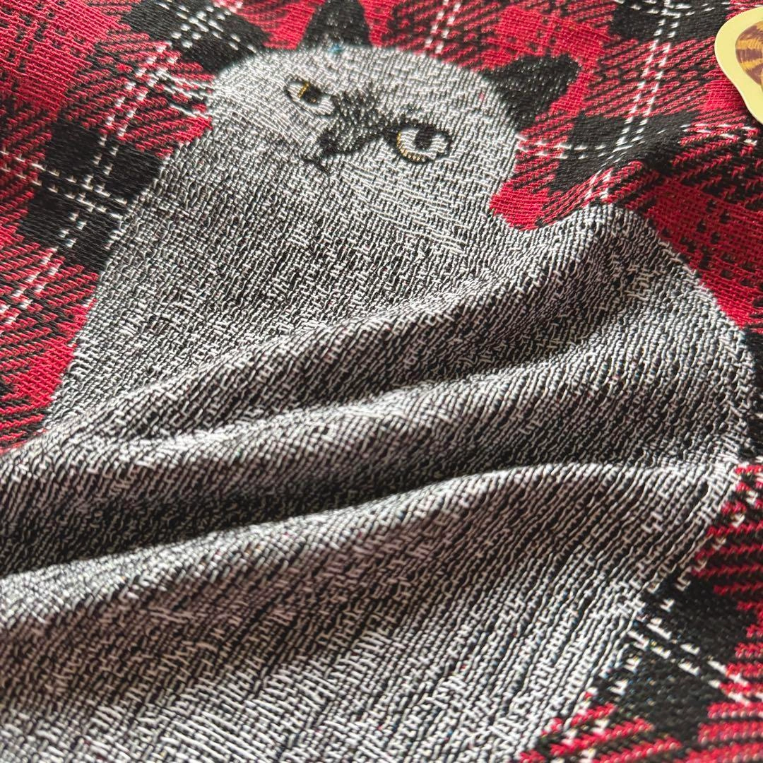 まつおみゆきさんの世界から飛び出してきたような、グレーの猫がこちらを見つめるトートバッグ。赤と黒のタータンチェックの背景に、ふわりと浮かび上がるその猫の姿は、どこか物語の一場面のよう。しんとした静けさの中に、柔らかなぬくもりを感じさせてくれます。 裏面には、小さな鉢に植えられたサボテンのモチーフが織り込まれています。シンプルでいて、日常の何気ない風景を愛おしく思わせるような表現が、まつおさんらしさを感じさせてくれます。 バッグ自体は、しっかりとした厚手の生地でできており、使い込むほどに味わいが増していきます。マチなしのすっきりとしたデザインながらも、日常のお出かけやお買い物にちょうど良いサイズ感。肩にも楽にかけられる長めの持ち手で、使いやすさも抜群です。 何気ない日々に、そっと寄り添ってくれるようなこのバッグ。まつおみゆきさんのやさしい世界観を、日常の中で感じてみませんか? サイズ32cm×37cm 素材ポリエステル71% 綿17% レーヨン8% ナイロン3% ポリウレタン1% 備考 ※表と裏で絵柄が異なります。 ※製造工程上、デザインのズレ、色ムラや織りムラがある場合がございます。 ※ネップが生地の表面に出ている場合がございます。ネップとは繊維が絡み合ってできた節(糸のかたまり)のことです。工程上避けられないものの為、良品の範囲内とさせていただきます。ご了承ください。 ※機械織りの為、商品到着時に多少油の臭いが残っている場合がございます。通常風通しの良い日陰に数日干していただくことで緩和されます。 ※手作業での縫製の為、商品毎にサイズが異なります。 ご希望の方はお気軽にご連絡ください。