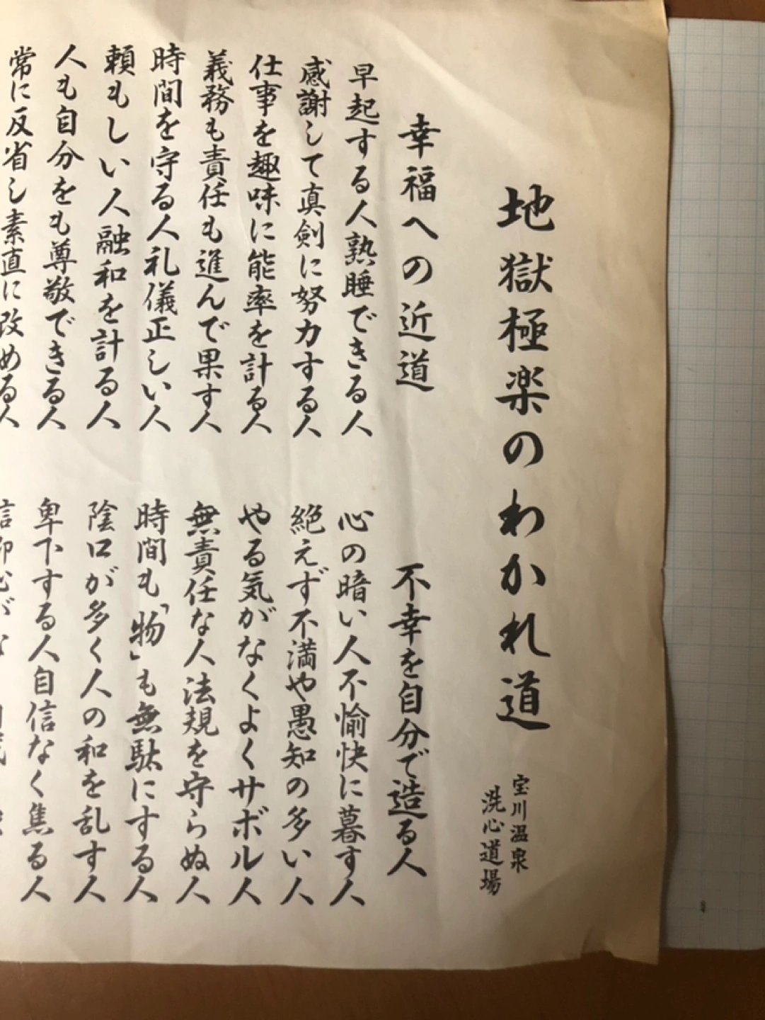 あたたかさ群馬県 宝川温泉 地獄極楽寺の分かれ道 幸福への近道 不幸を自分で造る人 格言集 昭和当時物 右下に1センチほどの破れ有ります (写真参照) 36×25センチ 経年劣化で縁側黄ばみ有ります 自宅3階