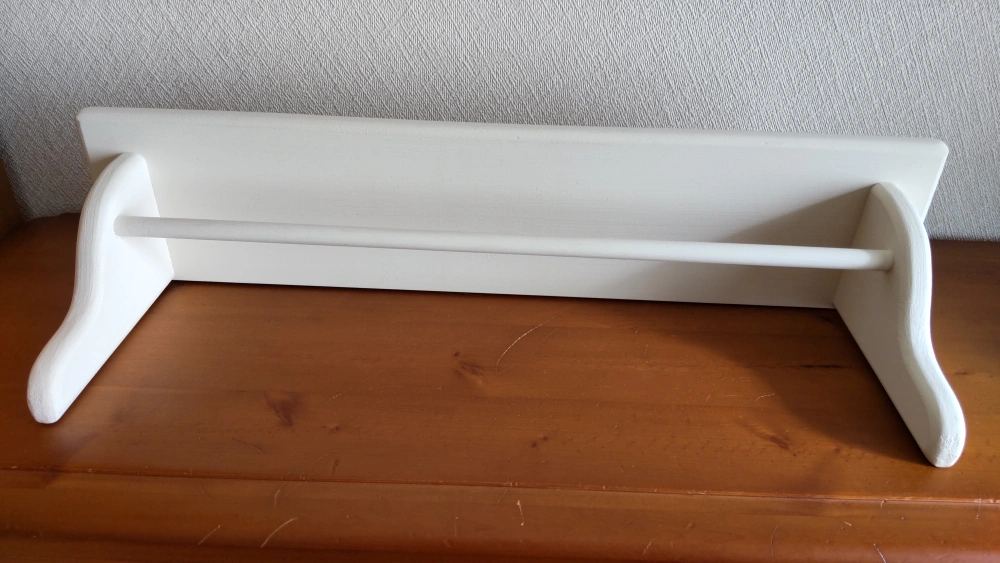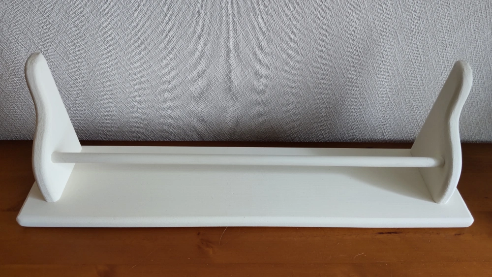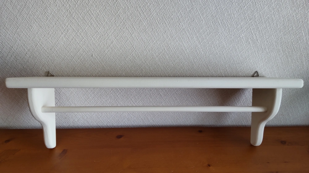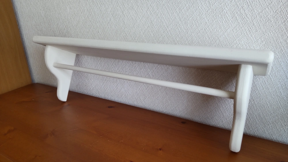 楽天でサイズをオーダーして購入しました。 うちは洗面所でタオルバーとして使用していましたが、リビングや玄関先に取り付けてSフックを使ってオーナメントや鍵を引っ掛けたりハンギンググリーンを掛けたりして使用するのもアリだと思います。 タオルバーとして使用する際は、フェイスタオルを広げた状態でかけられます。 (若干余裕が欲しかったので数センチ長めにオーダーしました) 楽天ではプッシュピンでも大丈夫となっていましたが 、私は木ネジで取り付けて使用していました。 木ネジの方が安全かと思われます。 色はマットなオフホワイトです。 横45cm 奥行10cm 高さ14cm 棚板の厚み1.5cm バーの長さ37.5cm お引き渡しは、JR亀有駅 or 京成線お花茶屋駅、もしくは上千葉砂原公園(バスあり) or ベニースーパーの駐車場でお願いします。 今月のお引き渡し可能日 ・14日(火)終日OK ・25日(土)午前中 or 夕方 ・29日(水)午後~ 後は日祝になります。