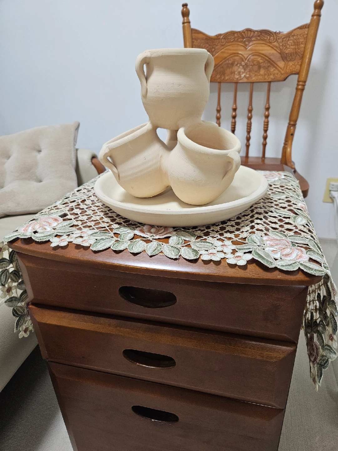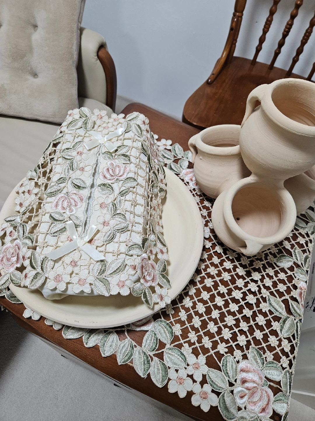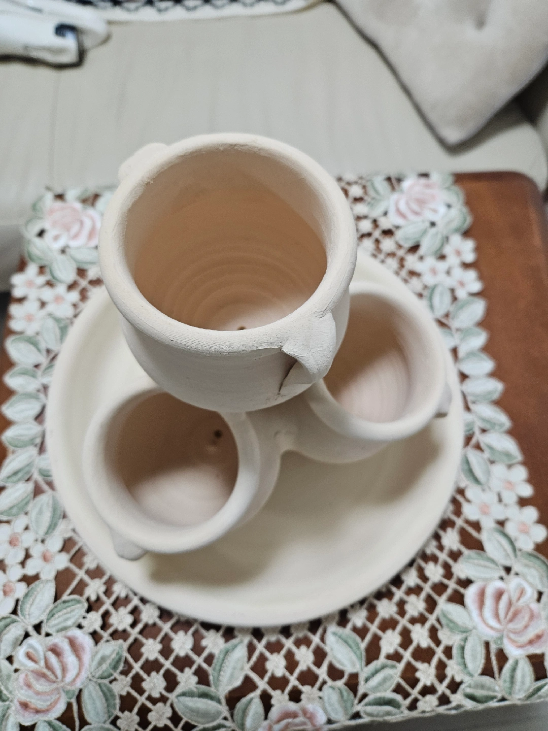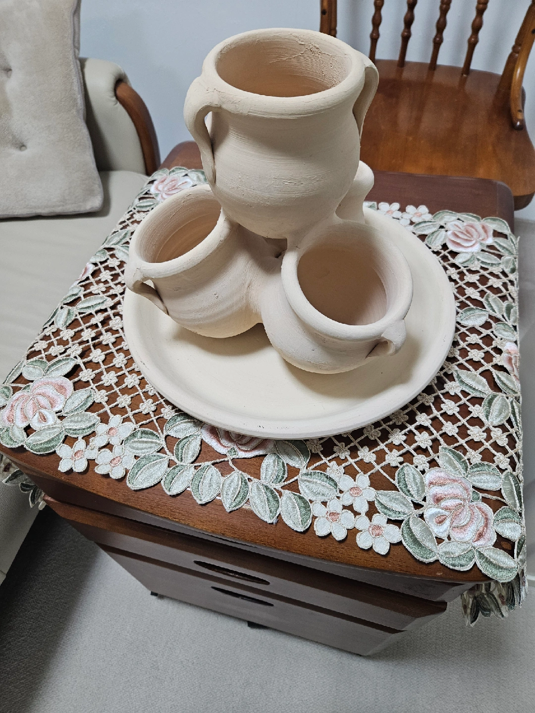 7.5㌢×10㌢の小さな植木鉢が4鉢バランスよく重なっています。 材質は素焼きですので多肉植物の観賞に 適しております。 鉢底には水抜穴があります。 ご希望の方には写真のテーブルセンターとティッシュケースをお付け致します。 カナダ🇨🇦で購入しました。