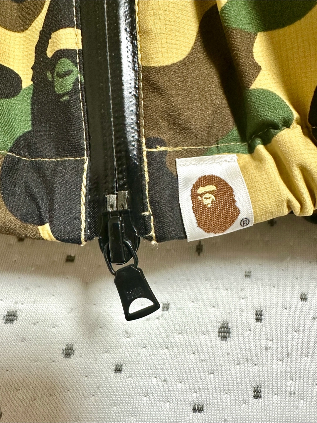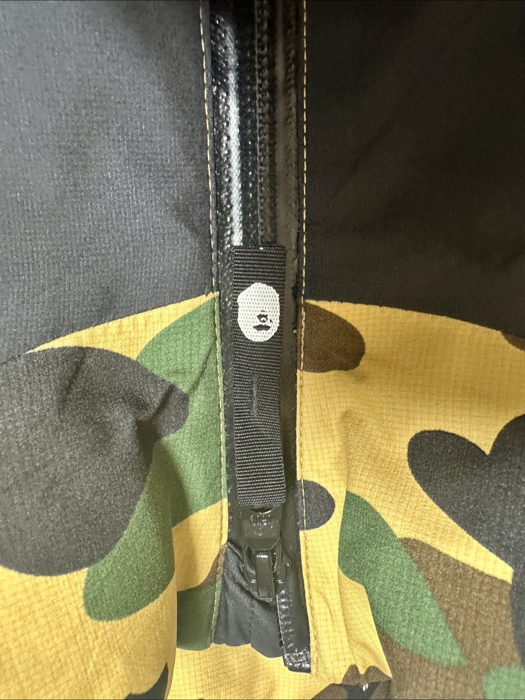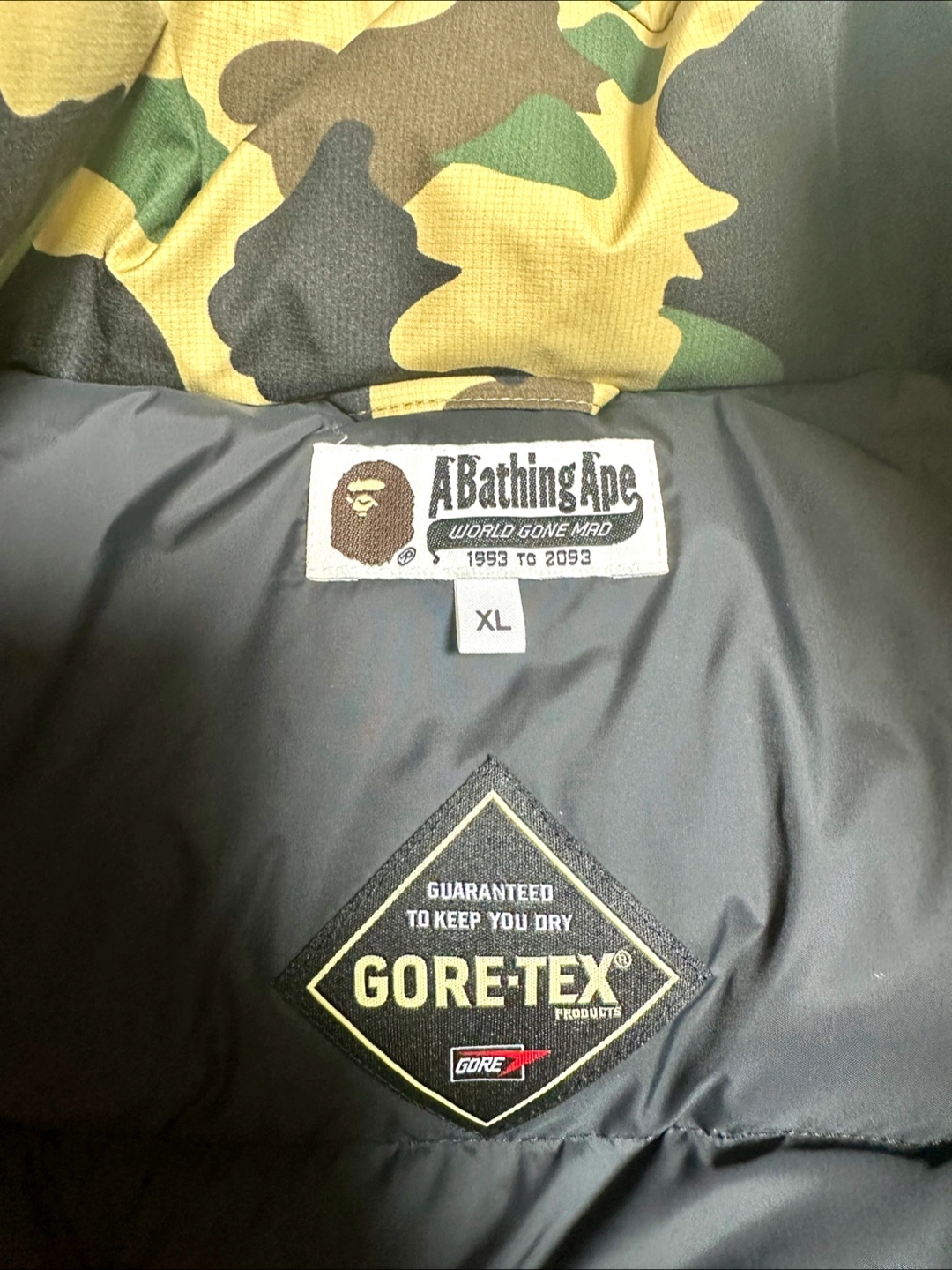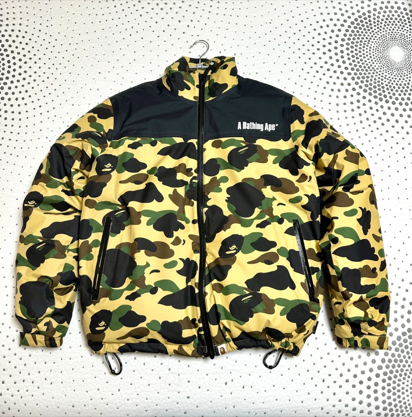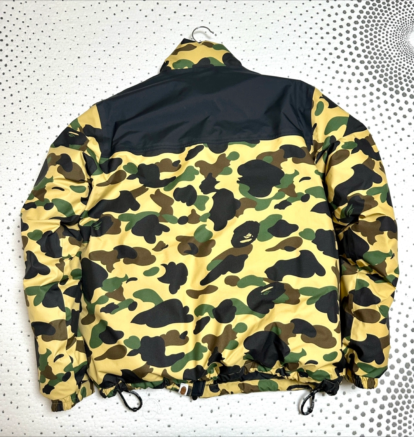 - ブランド: A Bathing Ape - カラー: カモフラージュ(ベージュ、緑、黒) - デザイン: ジップアップ、ポケット付き - サイズ XL 肩幅 50 身幅 60 袖丈 98 着丈 75 - 素材 90% DOWN 10% FEATHER / GORE-TEX 1回短時間着用の極美品です。 BAPE原宿で購入しました。 ゴアテックス素材で保温性・防水性抜群の アウトドア向けダウンジャケットです。 汚れ・破れ・臭いなどなし カラーイエロー系 素材(詰め物)ダウン