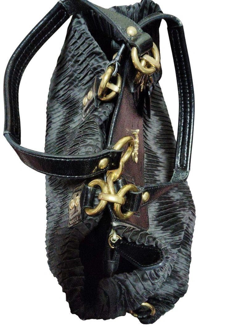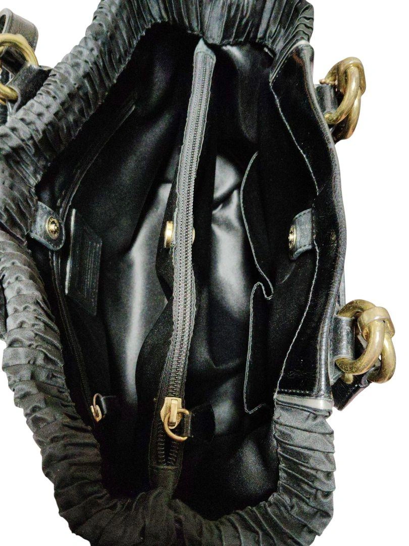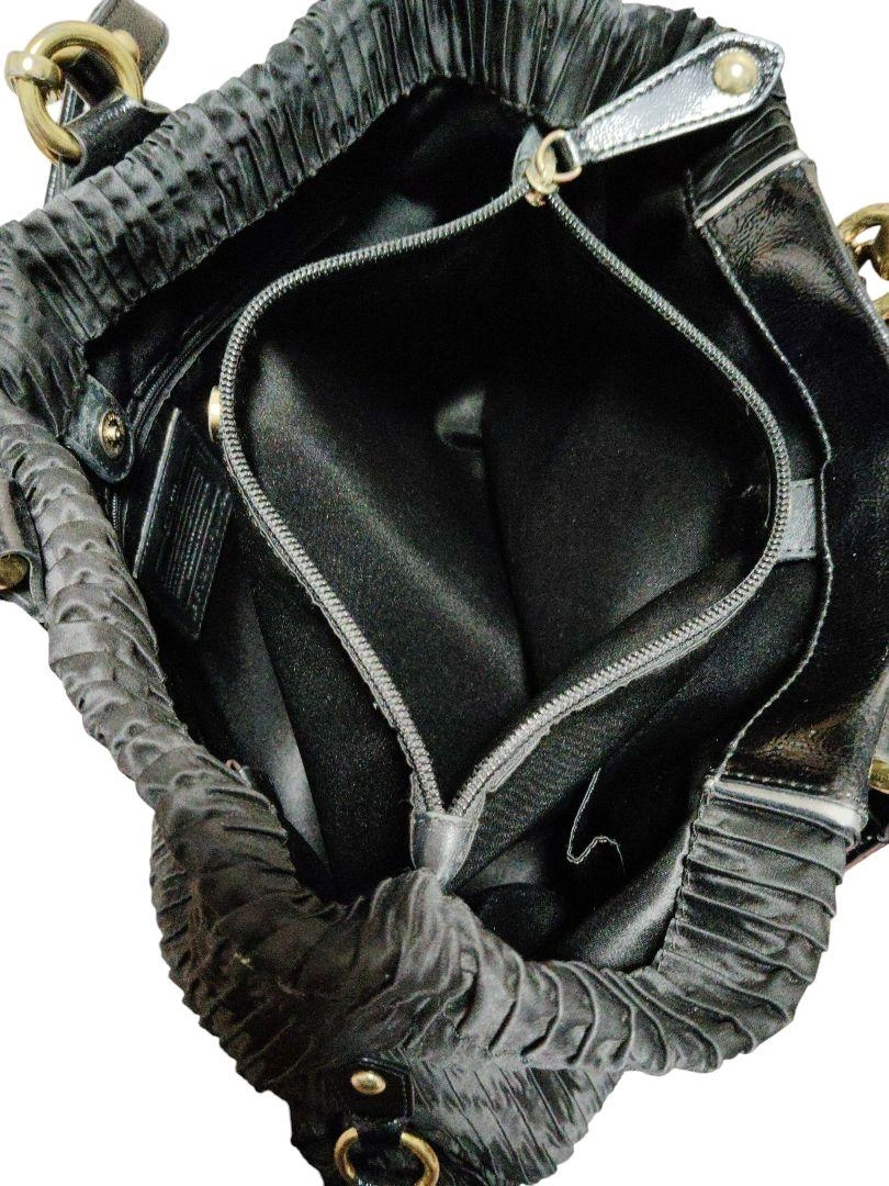 COACH(コーチ)の人気モデル「F20050 プレストン サッチェル」です。 アシュレイギャザード トートバッグプリーツ加工のブラックサテンにレザーのコンビネーション、ゴールド金具が上品で高級感のあるデザイン。 A4サイズも収納可能で、通勤・通学や普段使いにも最適です。 状態は【未使用に近い美品】で、目立った傷や汚れはございません。 内側もとてもきれいで、長くご愛用いただけるお品です。 ブランド:COACH / コーチ 型番:F20050 カラー:ブラック × ゴールド金具 素材:サテン × レザー 仕様:ファスナー開閉、内側ポケット複数 状態:未使用に近い(使用感ほぼなし) ●採寸 約33×27×10cm (横幅×高さ×マチ) ハンドル 約45cm 持ち手立ち上がり 約17.5cm  (横幅は底部を採寸) 素人採寸です。 使用感がなく、綺麗な状態ですが中古品のためご理解いただければ幸いです。
