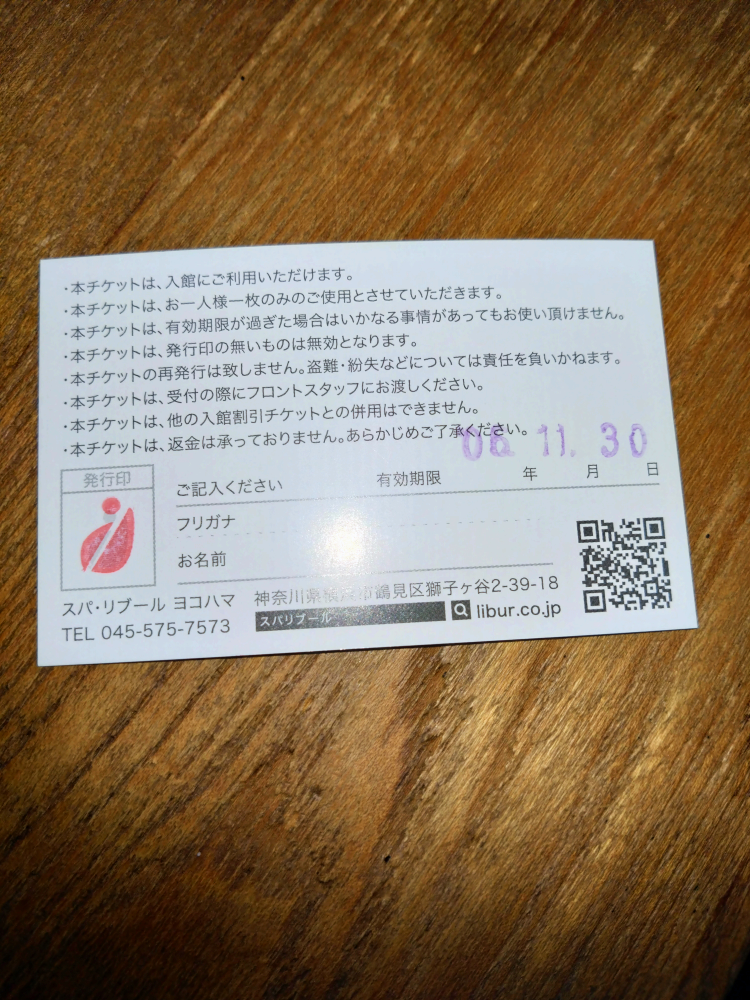 天然温泉スパリブールヨコハマの回数券です。 平日休日、使用可能です。 通常プラン 平日¥1520 休日¥1750 有効期限:2024.11.30有効(6枚あり) ✧只今、期間限定で館内のレストランやマッサージで使える¥1000分利用券を回数券1枚につき、1枚プレゼント!(2024.4.30有効) 商品 価格は1枚の価格となります。 1枚からお取り引き可能です。