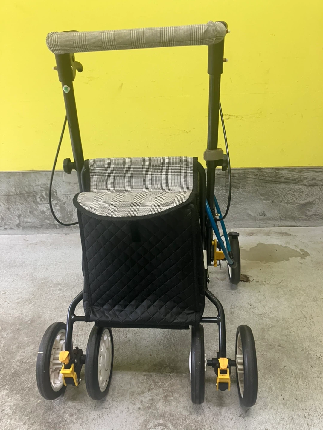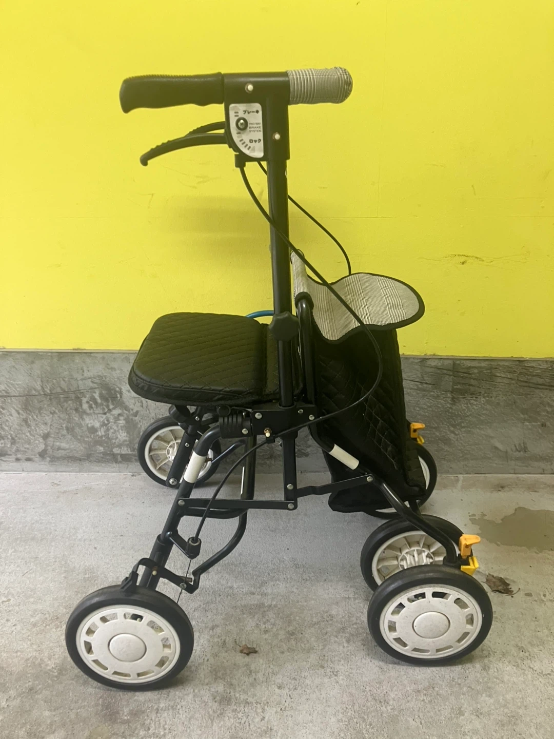 歩行器です ・色:ブラック ・座面:キルティング ・ブレーキ、ロック機能付き 怪我で歩行困難な時に、リハビリで半年位使いました。 その後1年位ビルトインガレージ内で保管してありました。 それなりの使用感はございますが、大きな傷や汚れは見当たりません。 まだまだ充分活躍してくれると思います。 自宅近辺まで取りに来てくださる方限定でお願いいたします。 事前にご連絡をいただければ、曜日問わず11時から18時の間お引き渡しができます。