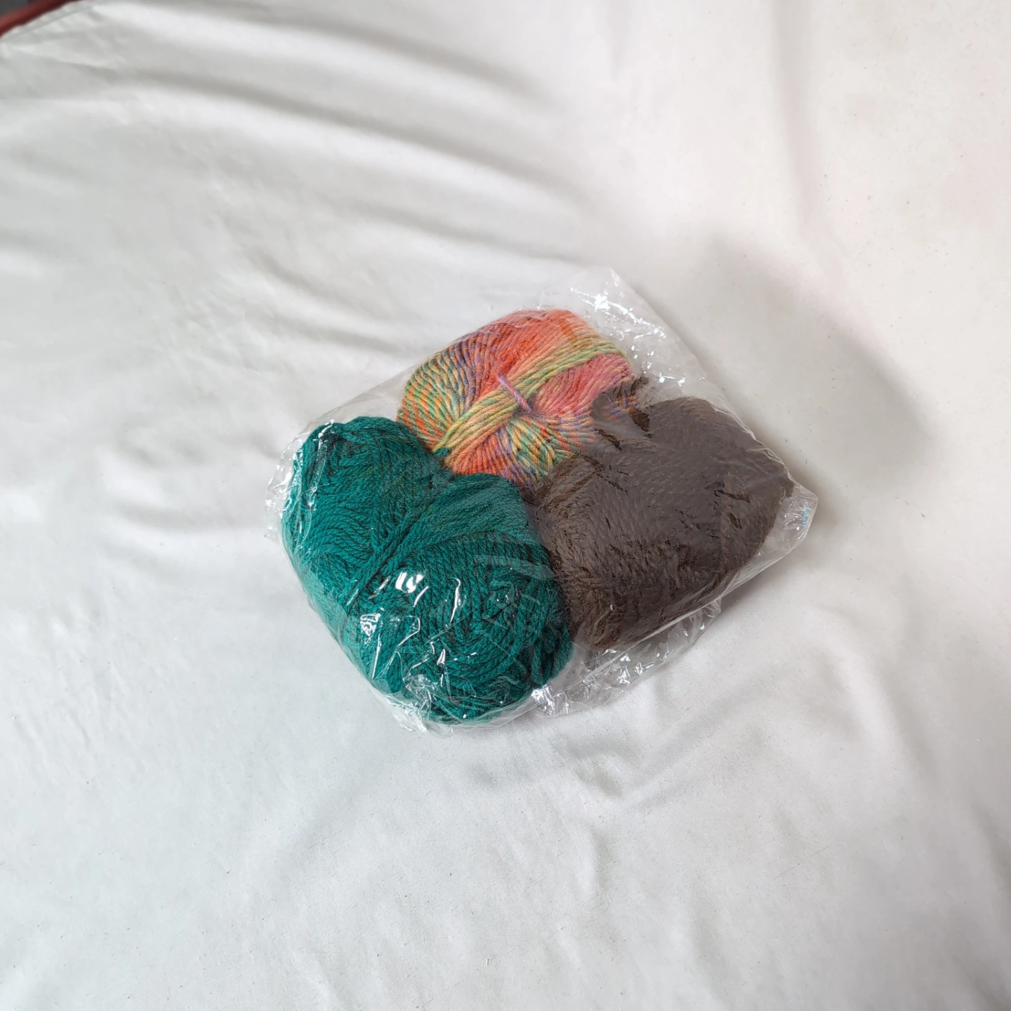 茶と緑の毛玉は少し使っています、カラフルな毛玉は未使用です、 よろしくお願い致します。