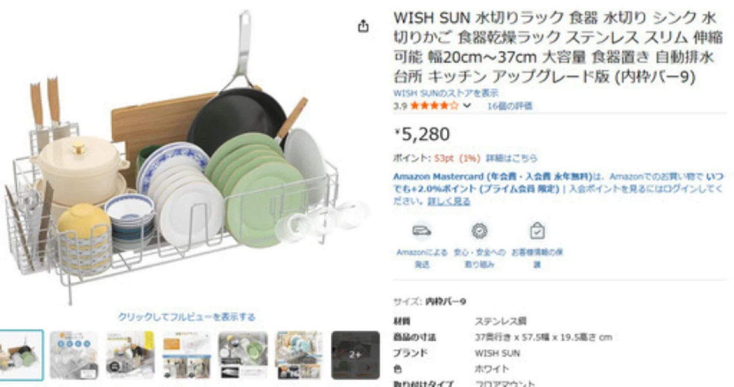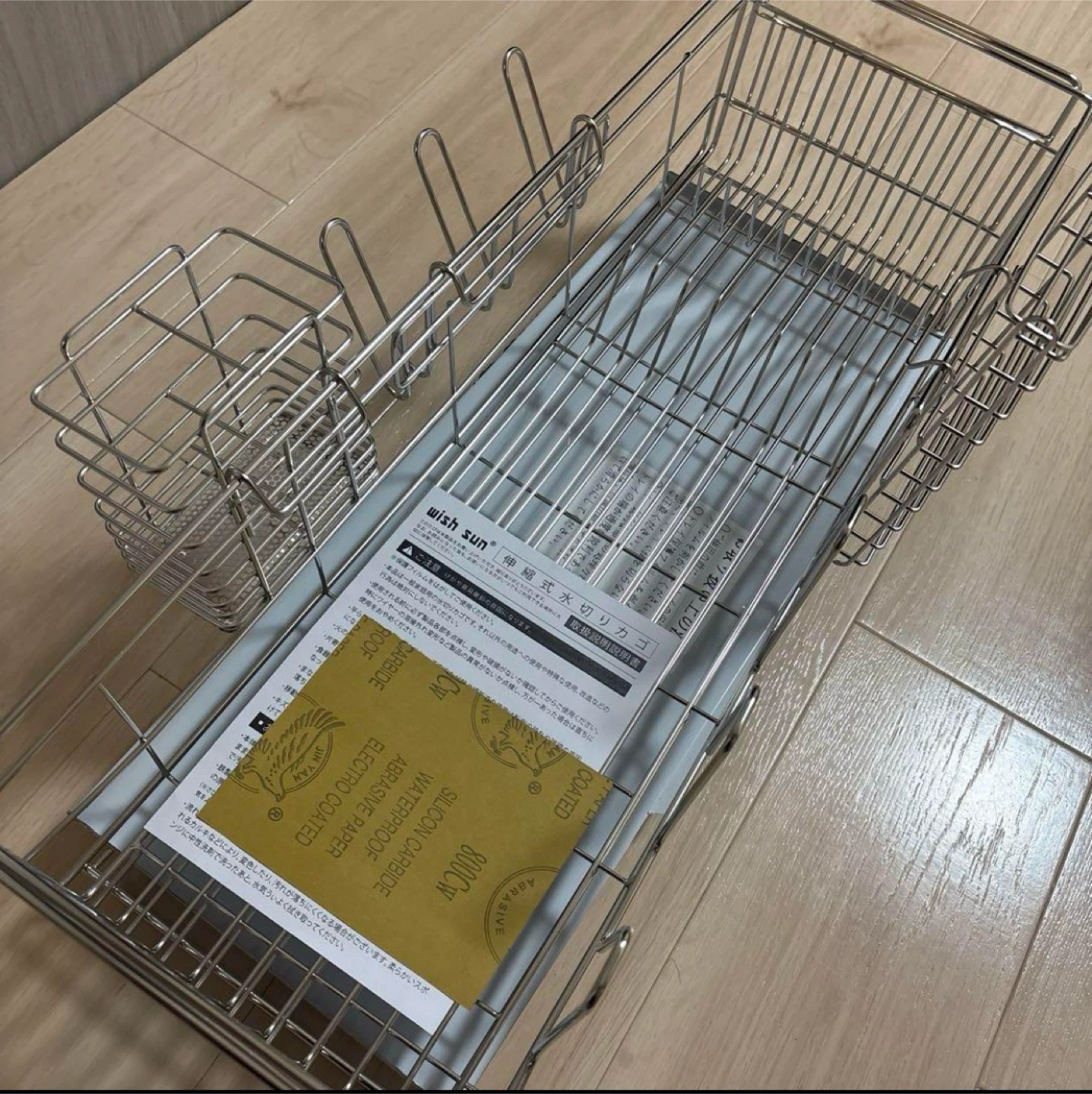 シンクなどの横に置いて使う、水切りラックです。 大変良いお品でしたが、キッチンのサイズに合わなかったため出品します。 一度設置して数回使用したのみで、まだまだ綺麗です。 トレイの保護フィルムも剥がしておりません。 購入時定価 5,280円から約25%OFFにしております。 お取引場所は、西日暮里駅近辺にて、詳細はメッセージで決められたらと思っております。 (商品が大きいですので、お車などでいらしていただく事を推奨します。) 以下、Amazon商品説明より抜粋 *************** 【材質】ステンレス鋼 【商品の寸法】37(奥行) x 57.5(幅) x 19.5(高さ) cm 【ブランド】WISH SUN 【取り付けタイプ】フロアマウント 【重量】2.61 キロ 【水切りラック 安定感抜群 揺れ防止】 WISH SUN 水切りラックは高品質なステンレス鋼201素材を使用しており、最大25kgの耐荷重能力を持ち、全体構造も堅牢です。重いボウルや皿を複数置いても水切りラックは安定しており、揺れることなく、安心して使用できます。さらに、WISH SUN 水切りラックの足部には滑り止めゴムが付いており、湿った環境でも固定され、滑りを防ぎ、安全性を向上させます。 【幅調節自由な水切りカゴ 収納力】 幅調節自由な水切りラックは拡張可能なデザインにより空間適応性が高く、家庭用キッチンから個人使用までどんなキッチンにも非常に適しており、特にスペースが限られている環境でキッチンの整理効率を向上させ、便利に使えます。水切りかごの横幅は20cm~37cmまで調節可能、洗い物に合わせてお好みでスライドで自由に幅を調整して利用できます。 【食器乾燥ラック 自動排水 食器 水切り】 メッシュ仕様水切りかごにそのまま置いて、排水ドレンを通じて食器の水がシンクに自動的に流れる水切りラックです。トレーが斜めになった構造により、余分な水を自動的に排出できて水が溜まりにくいです。排水トイレが取り外し可能で日々の掃除が簡単です。 【多機能 水切りラック】シンク上水切りラックはカップホルダー、カトラリー・スプーン等置きのポケットを搭載するので、小物を収納しながらキッチン用品の整理整頓を行います。シンク上 水切りラックの一台分のスペースで、排水の手間を削減してキッチンの清潔感を実現できます。 【ご注意】トレイの包装には保護フィルムが付いています。これはトレイが摩耗するのを防ぐためです。一部が剥がれる場合がありますが、これは錆びや塗装の剥がれではなく、製品自体に問題はありません。保護フィルムを引き剥いてご使用ください。ご理解いただき、誠にありがとうございます。