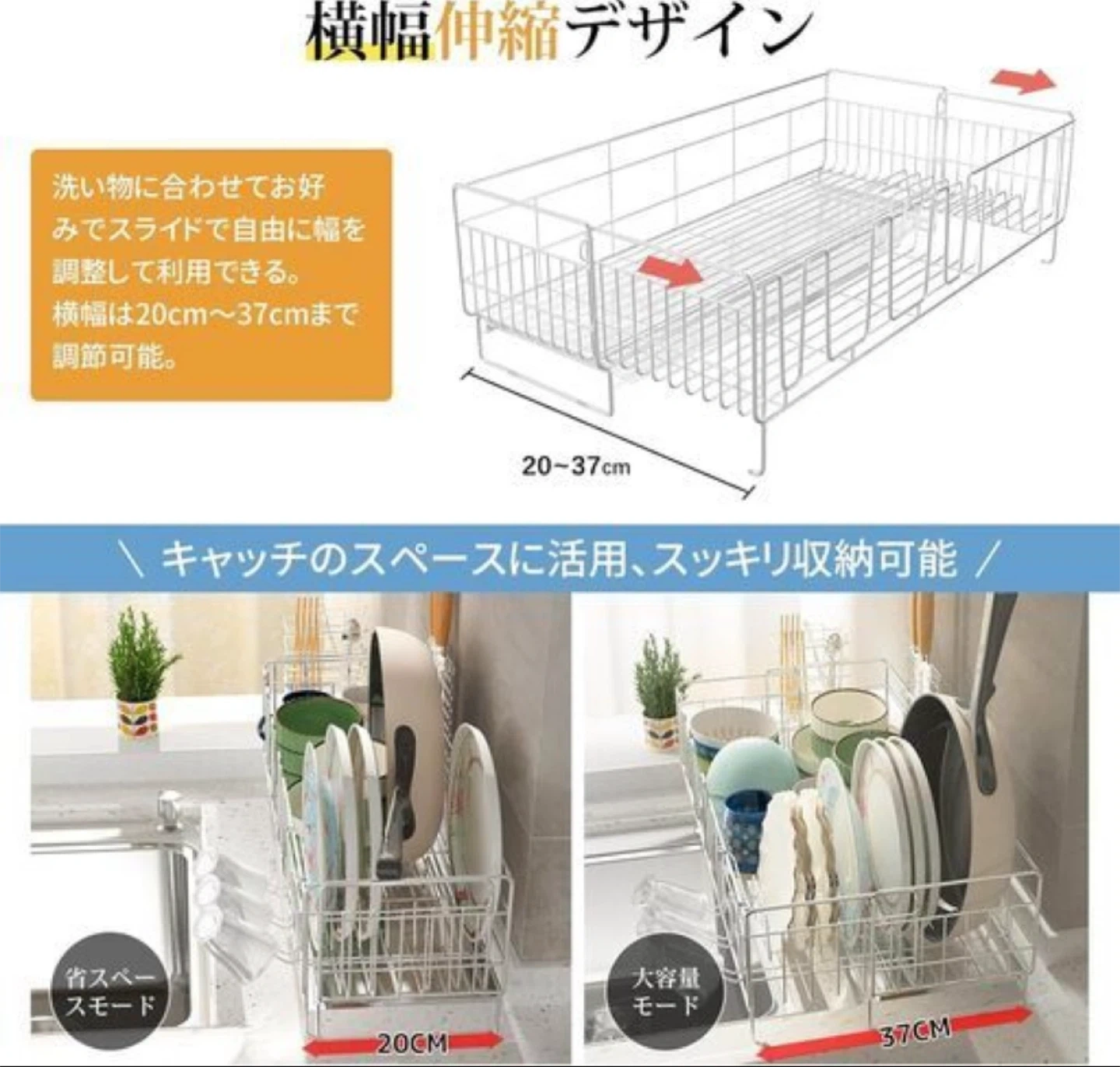 水切りラック 水切りかご 伸縮可能 20cm~37cm WISH SUN
