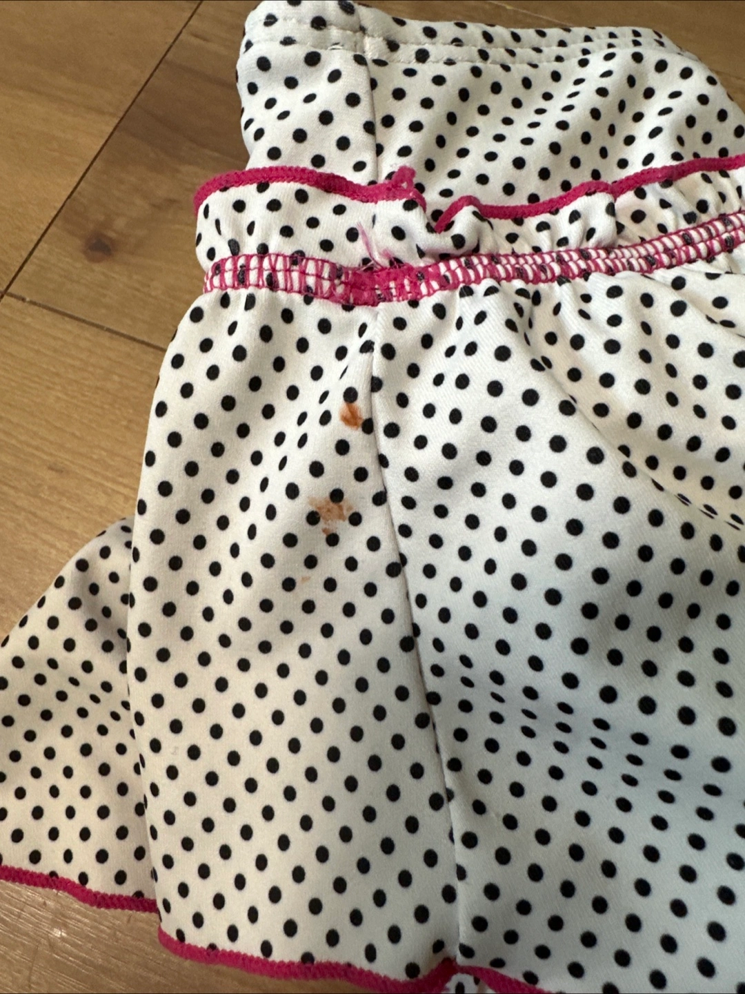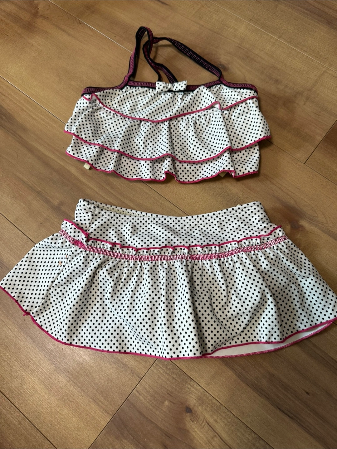 サイズ表記ないですが、100センチくらいだと思います。 セパレートのお腹が出るタイプの水着です。 横側の縫い目のあたりに少しシミがあります。 経堂駅、八幡山駅での受け渡しも可能です!