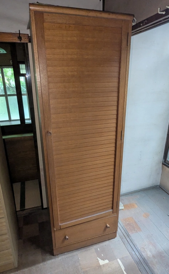 あたたかさ★お届けは終了しました。 ※ 写真は清掃前の状態です。 簡易的な清掃後にお渡し可能です。 ・古い家具の為、ある程度の汚れやキズ等が ある旨、ご了承の上でお願い致します。 ・寸法 幅 約 59cm 奥行 約 60cm (突起含む) 高さ 約 179cm ・洋服タンスそのままでお渡し ★取引場所は、変更する場合があります。 ★特に、当日無断キャンセル の場合は、運営への即時報告等 厳しく対処をさせて頂きます。