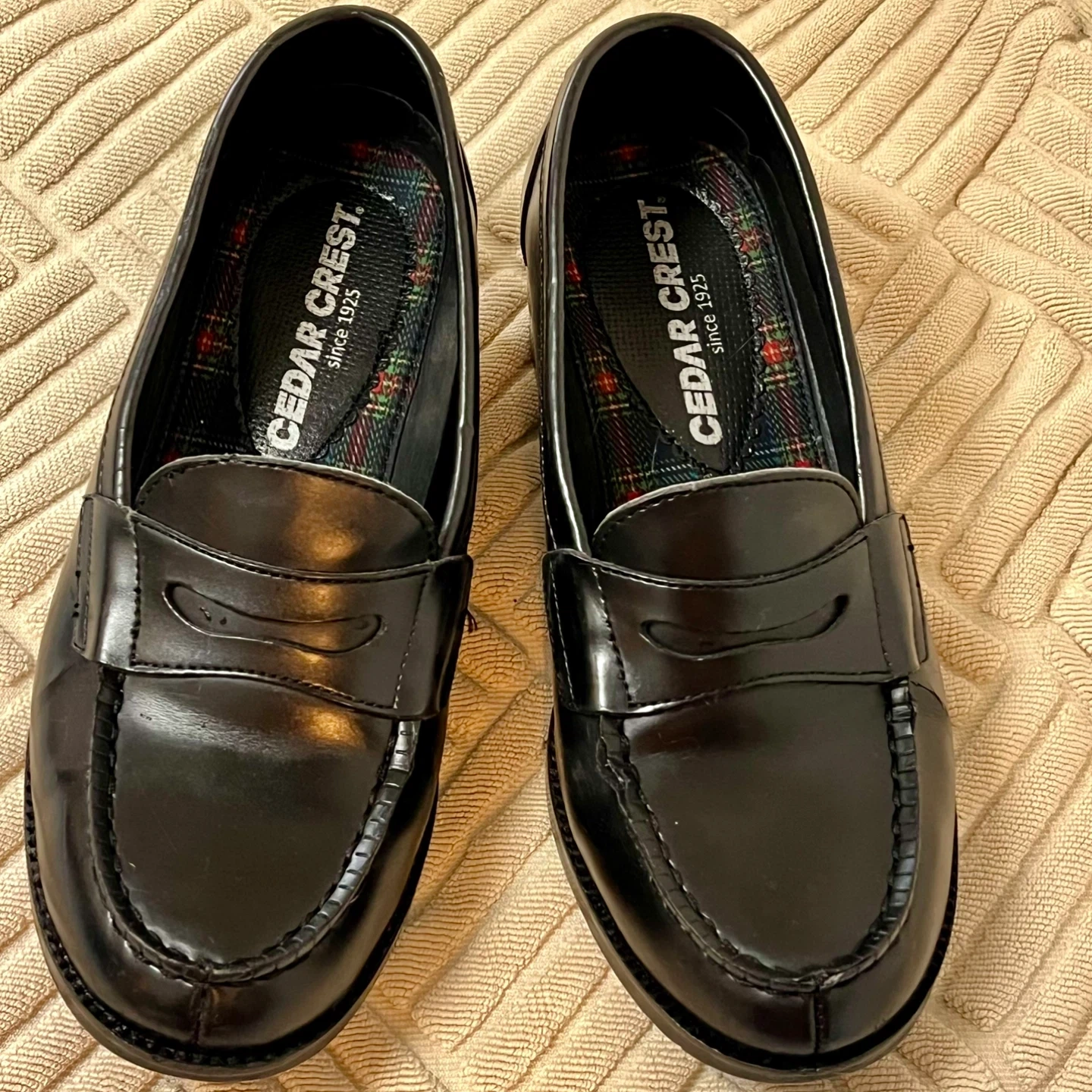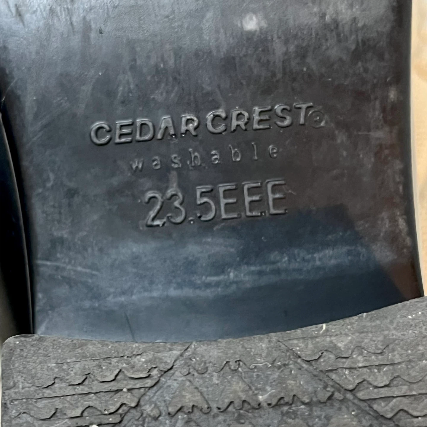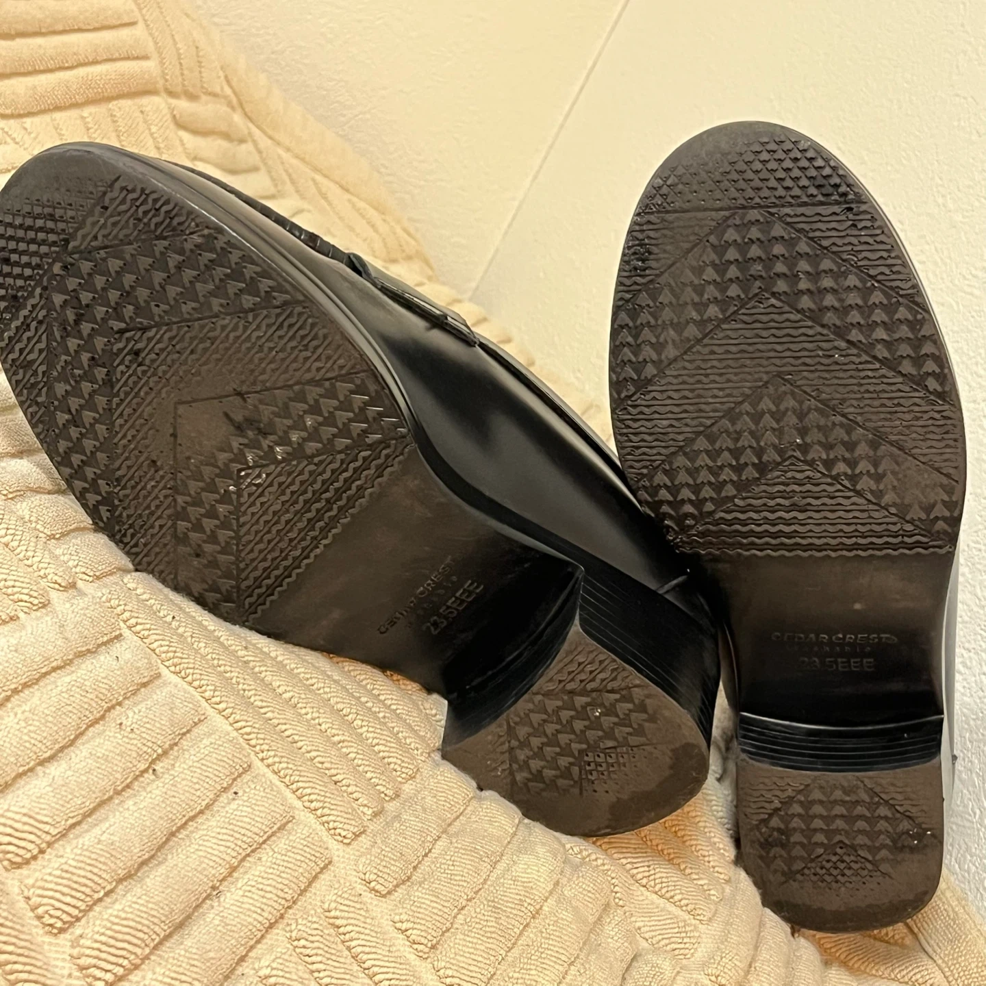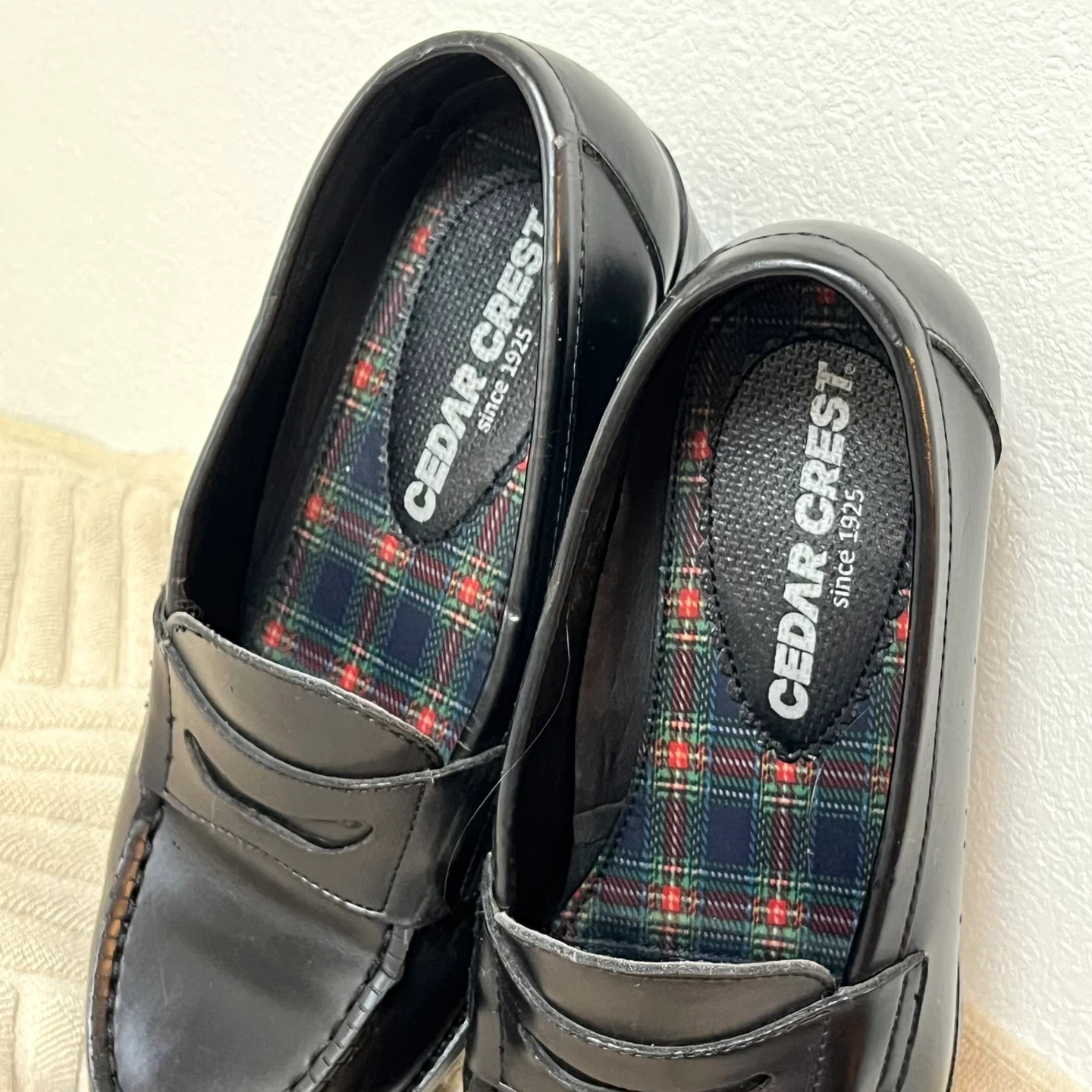 セダークレストの丸洗い出来るローファー。 合皮なので雨の日も安心。 ヒール高4.5cmほどで、何気に脚長効果。 この高さがあればリクルートスーツにも合わせられます。 ・カラー:ブラック ・サイズ:23.5EEE ・ブランド:CEDAR CREST 手持ちの機能性中敷きを重ねて使っていましたので、CEDAR CRESTのロゴが入った中敷きはかなり綺麗です。 出品に際し、再度丸洗いしましたのでこざっぱりしています。 中古品ですが、気持ちよく履いていただけると思います。 多摩地域、杉並区でしたらお近くまで車でお届け&取引も出来ます。 試着して合わなければキャンセルもOKです。