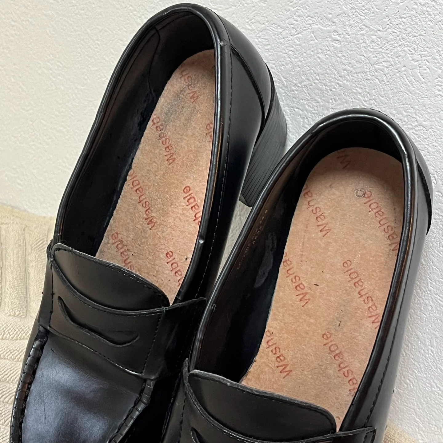 洗えるコインローファー ヒールローファー黒 23.5EEE セダークレスト