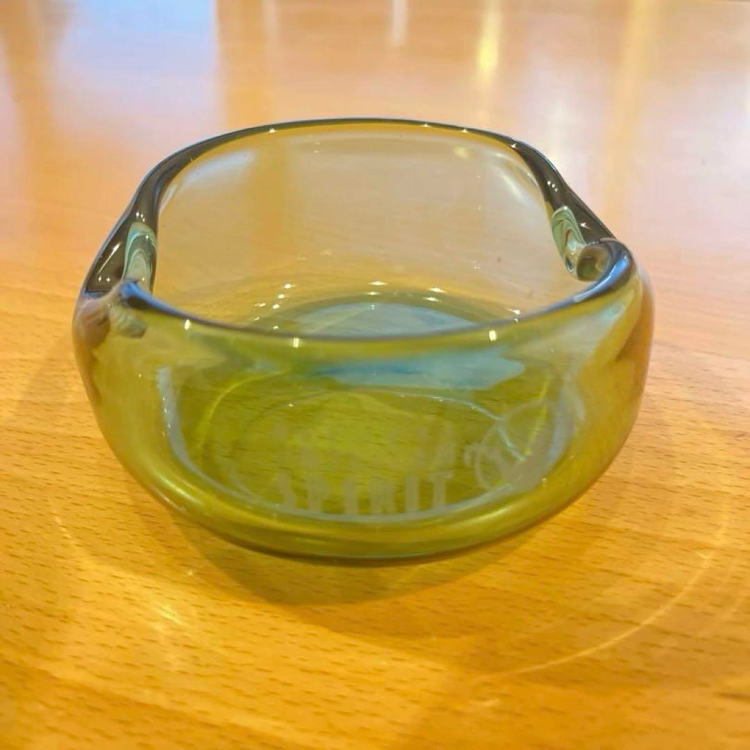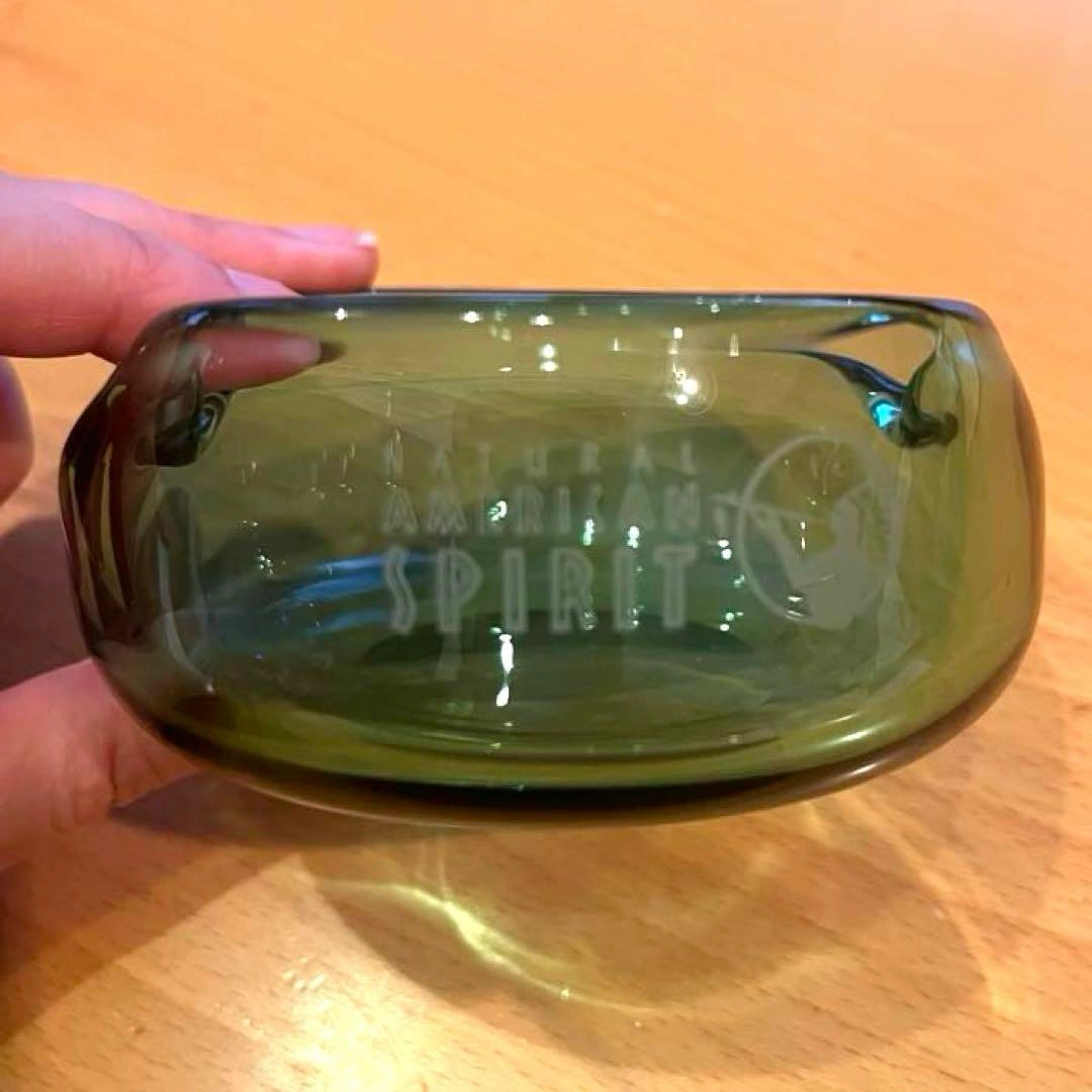 津軽びいどろの技術を応用した灰皿で、職人の手仕事によってひとつひとつ丁寧に仕上げられています。ひとつとして同じものはありません。 洗練された緑色のガラスで作られており、インテリアとしても美しい存在感があります。 【高品質な素材】 耐久性のあるガラス素材を使用しており、長期間使用できます。お手入れも簡単です。 【便利なサイズ】 コンパクトなサイズで、テーブルやデスクにぴったりフィットします。 サイズ 外径約9cm 高さ約4cm 主な素材...ガラス - 色: 緑 - 素材: ガラス - 形状: 四角形 - 刻印: SPIRIT - 付属品: 箱付き ご覧いただきありがとうございます。ご不明点はお気軽にお問い合わせください。