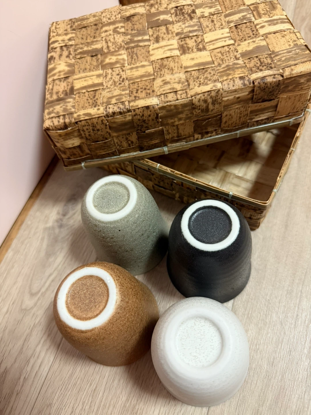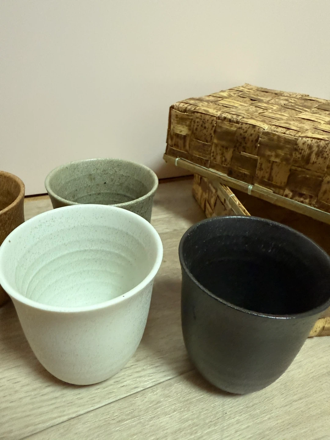 湯呑み4個セットです。 ・色:茶色、灰色、白、黒 ・状態:使用感少なめ ・箱付き 中古品であることご了承ください
