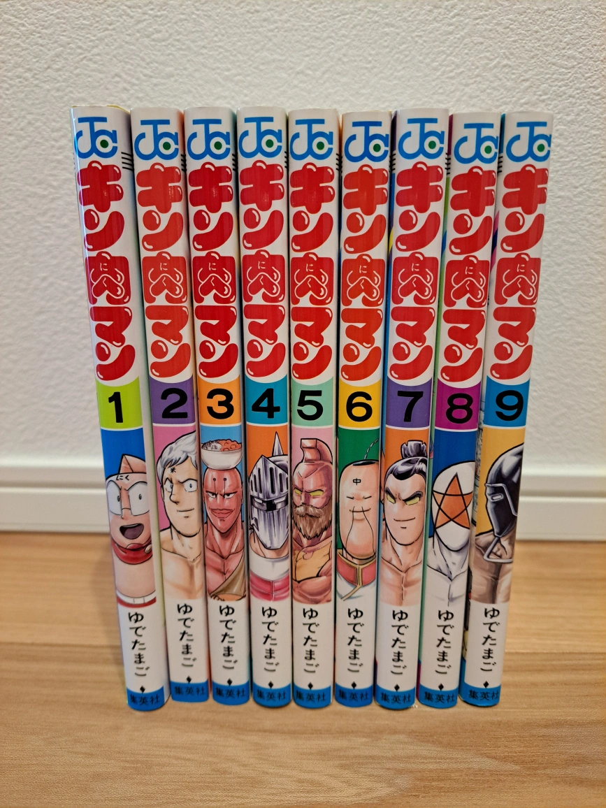 キン肉マンの1から9巻です。 ほぼ読まずに、自宅保管しておりました。新品購入したので、比較的綺麗な状態だと思います。 何かありましたら、コメント下さい!