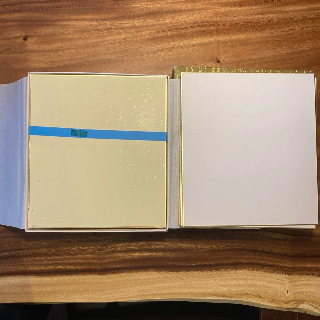 色紙 水墨画 寄せ書き 50枚 です。 ずっと実家に保管されていたので色紙自体は綺麗ですが、箱に多少の傷、汚れがあります。 サイズ 273mm×243mm ご希望の方はお気軽にご連絡ください。