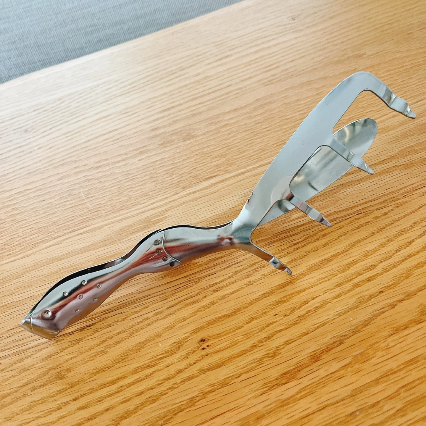 ステンレス製のフィッシュトングです。 5 回ほど使用しました。 4本の爪で焼き魚をしっかりキャッチ。 爪がグリルの網目に差し込まれるので、魚を無理なく崩さずにつかむことができます。 7枚目のようにコンパクトになるので、しまう時に場所をとりません。 申し訳ありませんが 値下げ交渉、お渡し場所の変更は ご遠慮いただいております。 ご了承くださいませ。 お渡し時間は 平日の午後14~20時頃ですと助かりますが、 ご都合のつかない場合はご相談くださいね。 お渡し場所は 早大通りと江戸川橋通りが交差する 山吹町交差点付近 (有楽町線の江戸川橋駅より徒歩5分、東西線の神楽坂駅より徒歩9分) でお願いします。 最初のメッセージにて、 ご希望の日時をご連絡いただけると スムーズにお渡しできると思います^ ^ 【商品詳細】 サイズ:全長230mm 材質:18-0ステンレス #キャロットで新生活