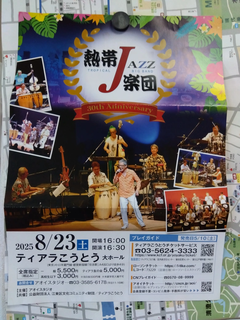 コンサートチケットです 公演名:熱帯JAZZ楽団 会場:ティアラこうとう 大ホール 最寄り駅 住吉(都営新宿線 半蔵門線) 日程:2025年8月23日(土) 開場:16:00 開演:16:30 席 1階 R列