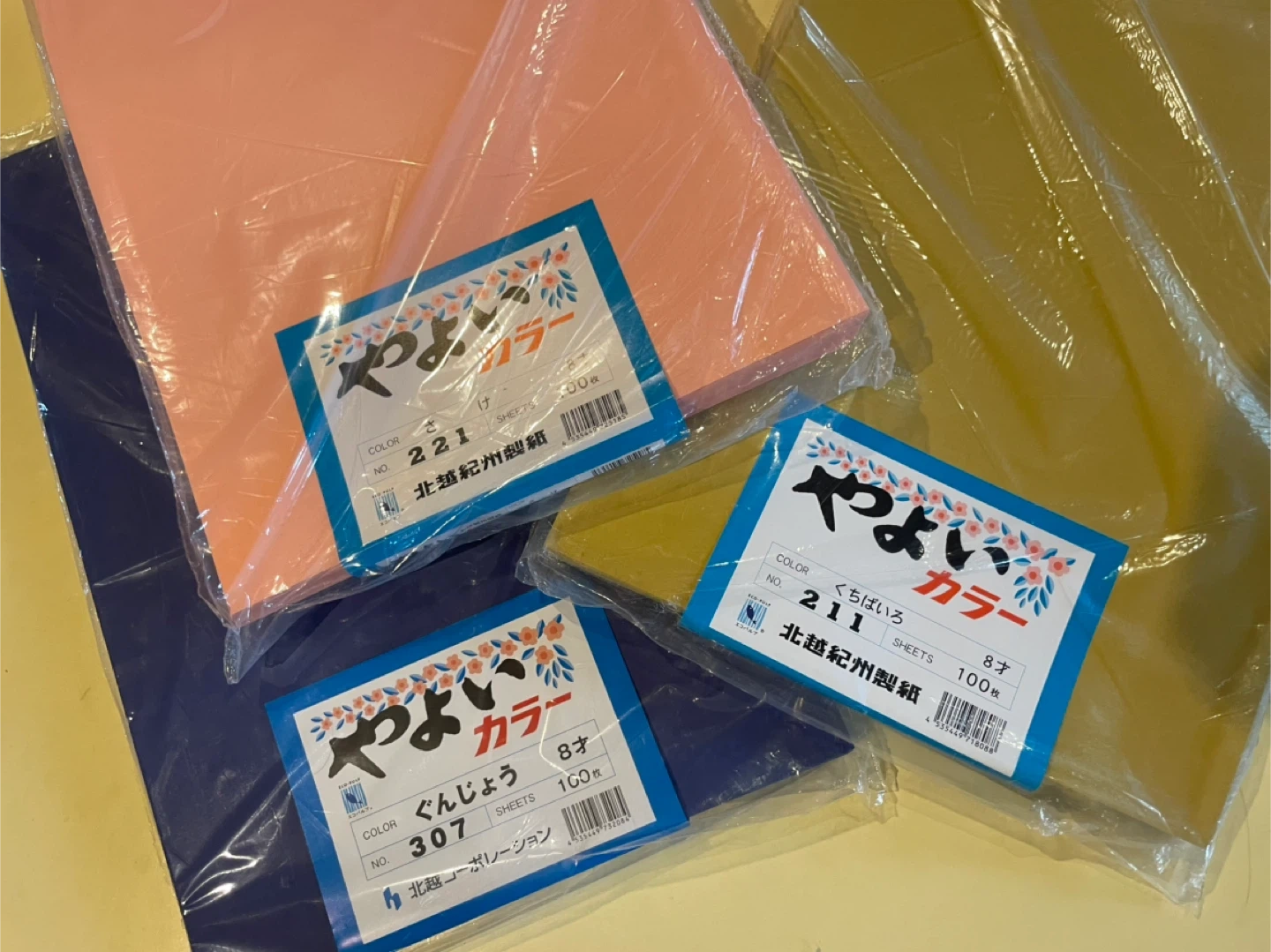 やよいカラー 八切り100枚 ⚫︎ぐんじょう ⚫︎さけ ⚫︎くちばいろ まとめて1800円 バラ売りは、各色800円 変色や折れや曲がりは有りません。