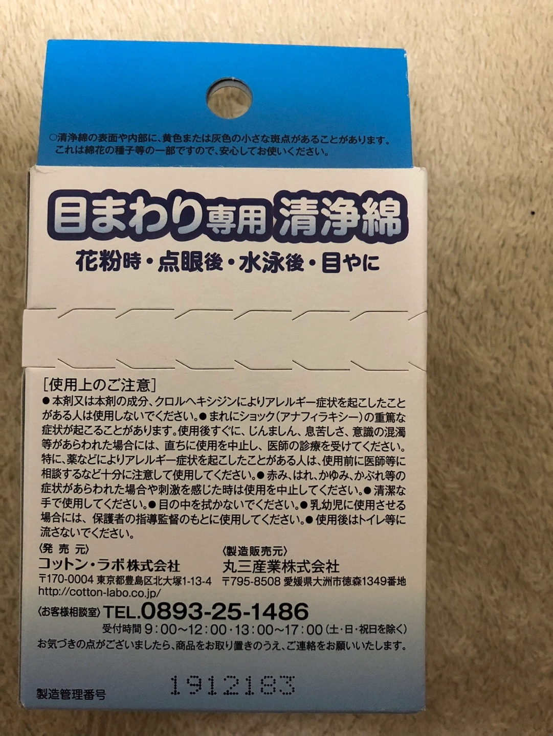 商品のご案内 商品名 目まわり専用清浄綿 内容量 12包(1枚サイズ40×55mm) [特長]: ■花粉時・点眼後・水泳後・目やにの清浄・清拭 ■肌にやさしく傷口にやさしい天然コットン100%使用 ■アルミ包装だから衛生的で中身の乾燥を防ぎ、いつも清潔で安心! (高圧蒸気滅菌処理済) ※2個ありますので… ご購入の際は、数も明記して下さい。 注: 自宅マンションにて保管していました。細かい汚れ等の見落としはご容赦下さいませ。 また、特に状態に敏感な方のご入札はお控え下さい。 光の当たり方によって写真と実物のカラーが多少異なる場合がございますことをご理解の程よろしくお願いいたします。 ご不明点等ございましたらご連絡ください。 受け渡し場所は、洋服の青山(馬事公苑店)希望ですが… 取引き場所の変更可能です。 洋服の青山(馬事公苑店)周辺、農大、馬事公苑周辺、経堂駅周辺、千歳船橋駅周辺、用賀駅周辺、などが行きやすいです。 ※千歳船橋駅、経堂駅、用賀駅は改札越しのお取引可能です。