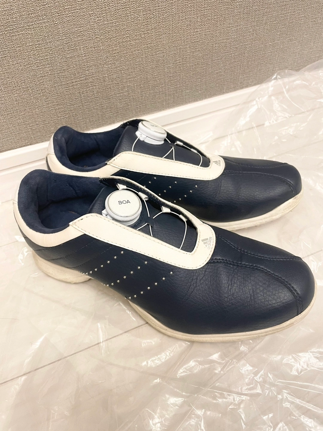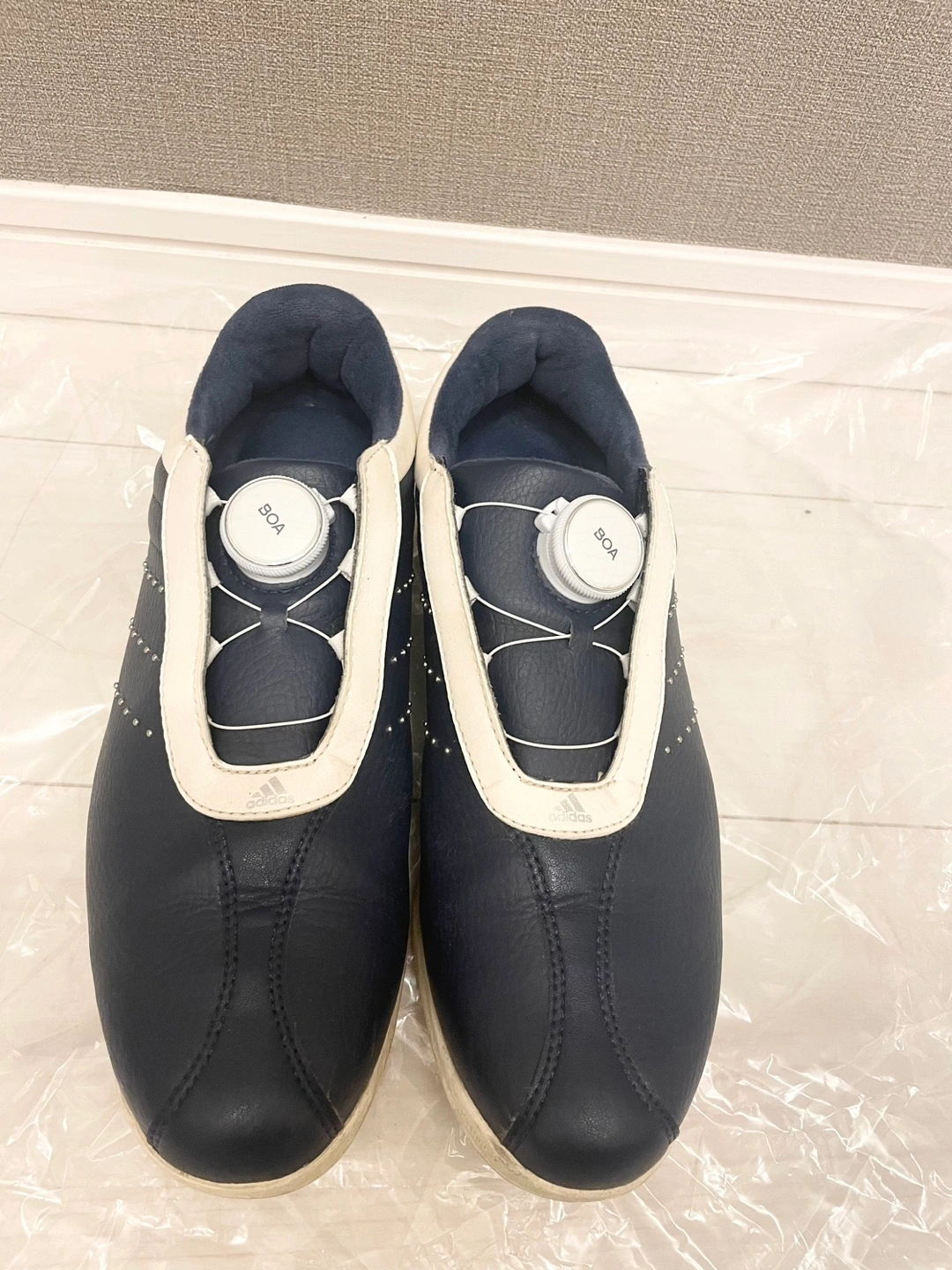 とてもスタイリッシュなシューズです。 ソフトスパイクの替えもあります。 ホールに行った時に数回着用したのみなので綺麗な状態です。 靴紐が解けることがないので、心配事が一つ減ります。 - ブランド: adidas - 色: ネイビー - タイプ: ゴルフシューズ - 特長: BOAクロージャーシステム - モデル: 女性用 ご覧いただきありがとうございます。 クロージャー···ダイヤル