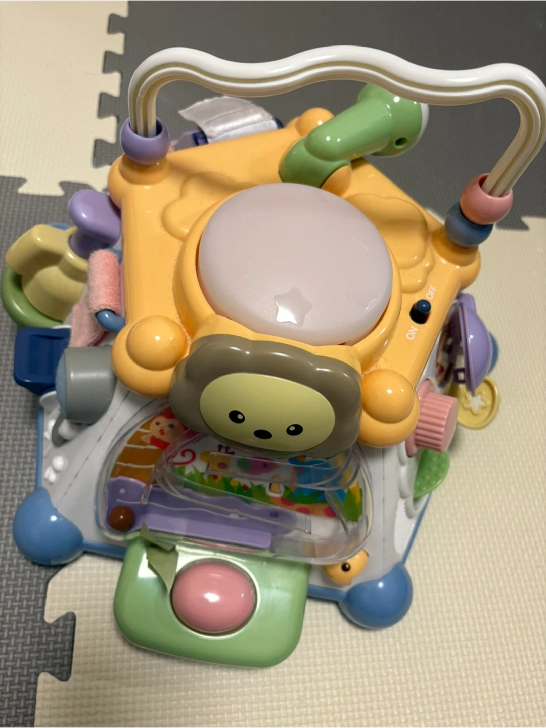 360°遊べる半年前後から遊べる知育玩具です 電池は入っていません。 ・色:パステルカラー ・使用感があります 中古品であることご了承ください!