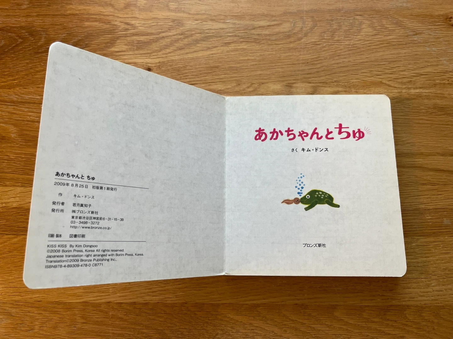 絵本「あかちゃんとちゅっ」です ・作:キム・ドンス ・ブロンズ新社 ・使用感あり 10年以上前の絵本です。 傷が目立ちますが、とてもかわいいイラストの本です。 読んでいただけるお子さんにお譲りできたら幸いです。