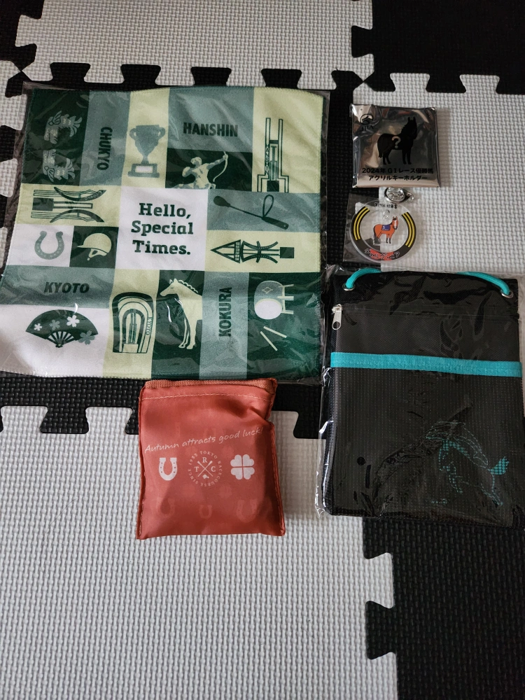 競馬グッズのまとめ売りです 競馬場でwelcomeチャンスで当選品や入場特典で貰ったものです。 ・ハンドタオル(welcomeチャンス) ・キーホルダー (welcomeチャンス) ・サコッシュ(welcomeチャンス) ・エコバッグ(入場特典) 受け渡し場所は習志野台周辺ですが、曜日によっては習志野台、薬園台周辺~西船橋駅が可能です