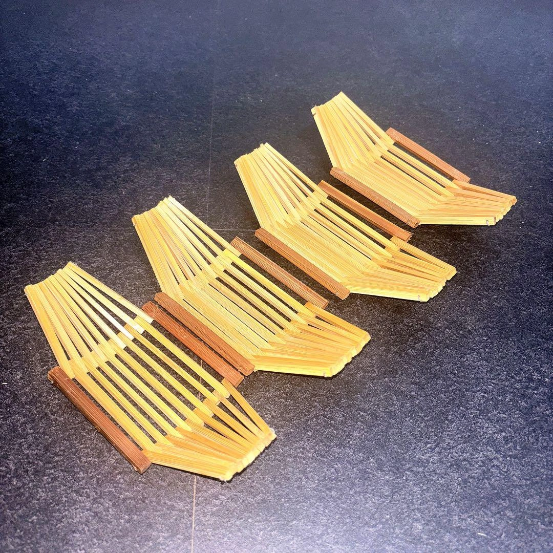 ご覧いただきありがとうございます。 竹製のおしぼりトレイ4点セットです。 ナチュラルで温かみのある素材感が魅力で、和食店や旅館風の食卓、来客用のおもてなしにもぴったりです。 軽くて扱いやすく、おしぼりトレー以外にも小物置きやお菓子トレーとしてもお使いいただけます✨ 【素材】竹製 【数量】4枚セット 【状態】美品 【サイズ】(おおよそ)縦×横 × 高さ cm ※測定可 自然素材のため、木目や色合いに個体差があります。 和の雰囲気を大切にされる方におすすめです。 ご希望の方はお気軽にご連絡ください。