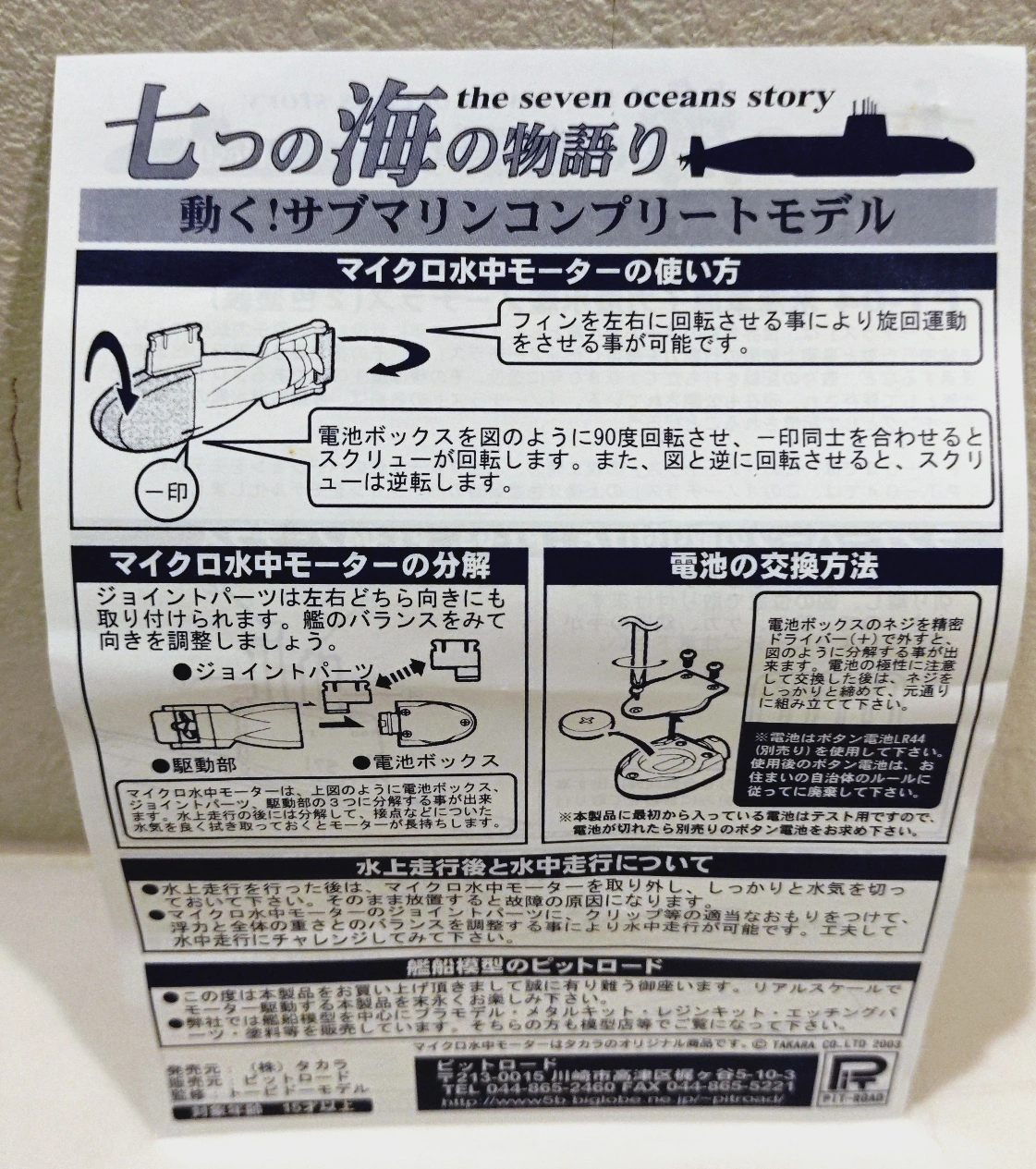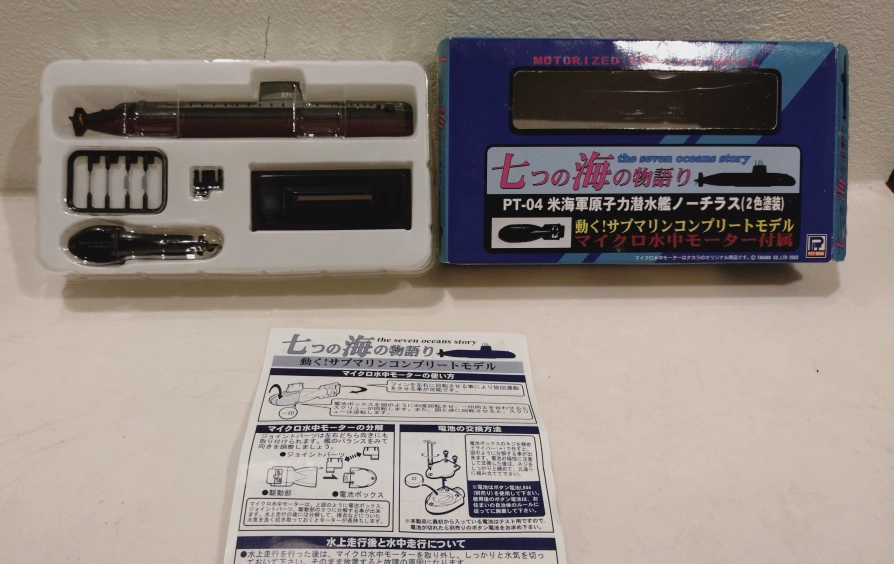 動く!サブマリンコンプリートモデル マイクロ水中モーター付属 と記載されていますが、中にボタン電池が入りっぱなしになっています為、劣化でたぶん液漏れし動かない可能性あります 長年、空調効いてる倉庫で保管していて、7月に自宅に持ってきたものです 動かないと思います為、飾りとして使っても良いと思います