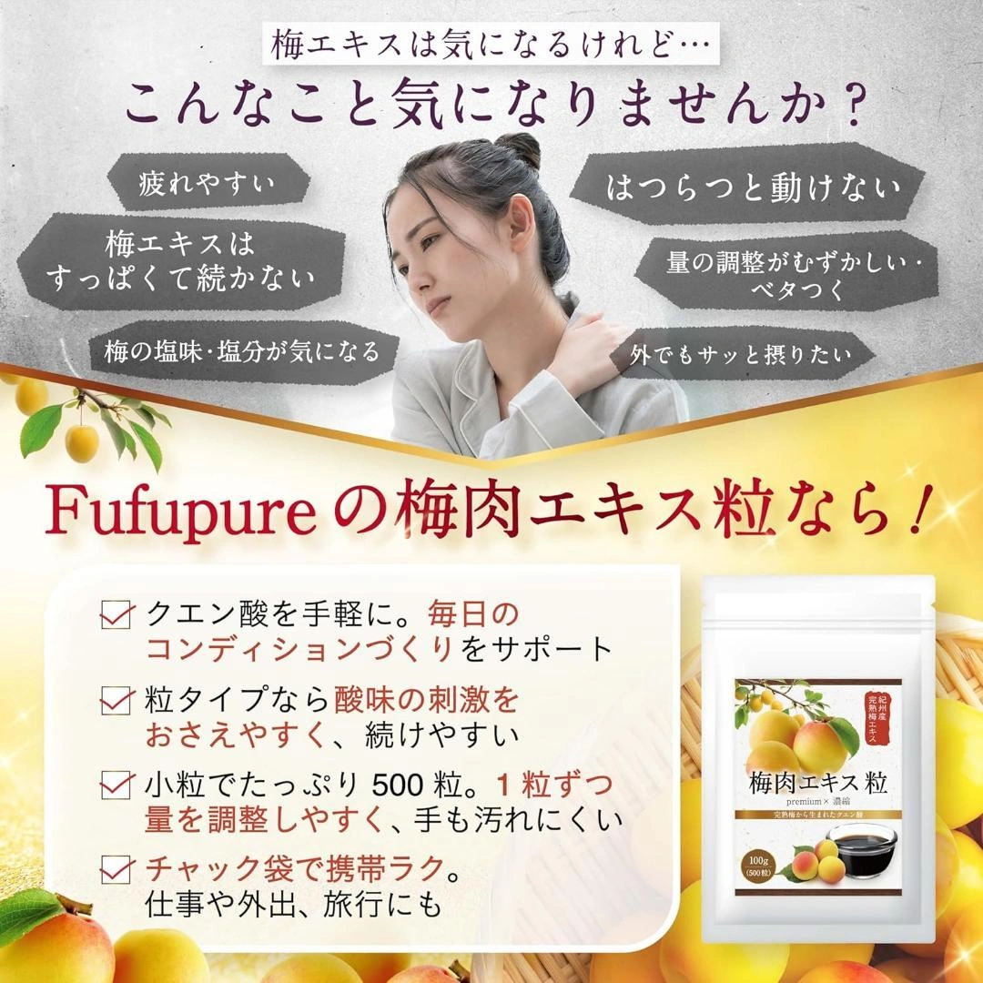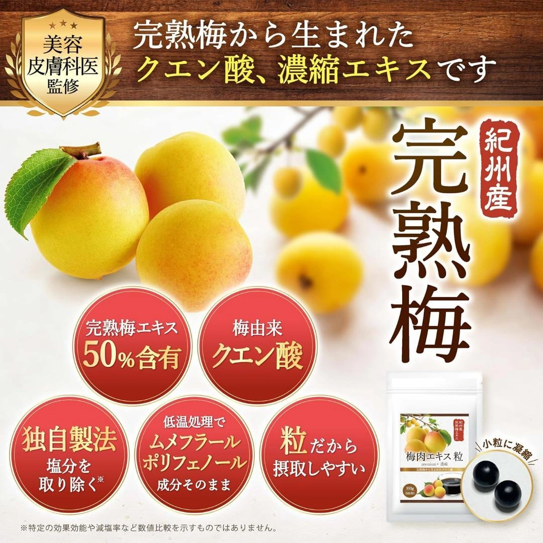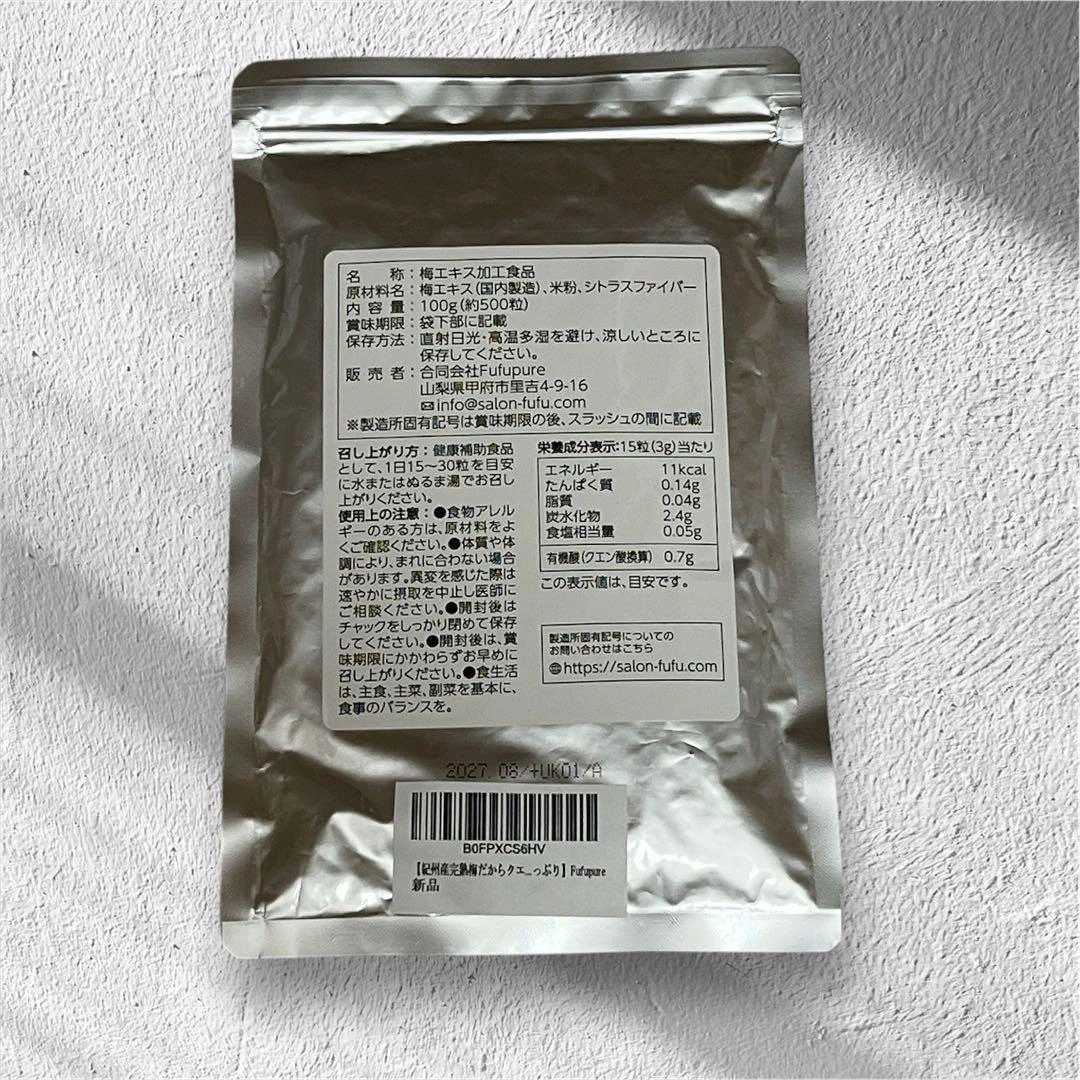 あたたかさ紀州産完熟仕込みの梅エキスです。主成分は梅由来のクエン酸。 【賞味期限】 2027.07 【数量】 500粒(100g) 美容皮膚科医監修。 ご希望の方はお気軽にご連絡ください。