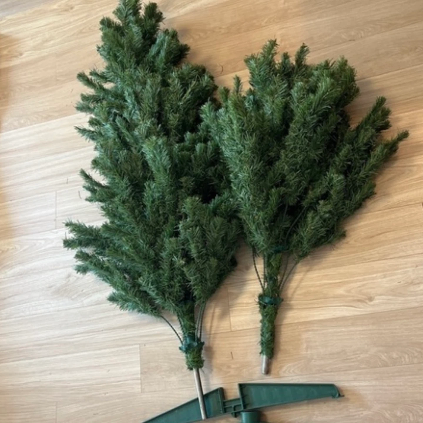 全長が約2m5cmです。 ※素人の確認となりますのでご了承下さい。 二段組立式となります。 オーナメントは付きません。 ツリー本体のみとなります。 多少葉が落ちますが、まだまだ立派なクリスマスツリーです(^^) 気になる点としては、1番下にある葉を支えている枝部分が少し下がって来るかなと感じました。 写真6枚目の収納バッグもおつけします! コンパクトに梱包した状態でお渡しいたします。 状態は写真をご確認ください。 不明な点などございま したらご連絡ください。 よろしくお願いいたします。 #クリスマス #クリスマスツリー