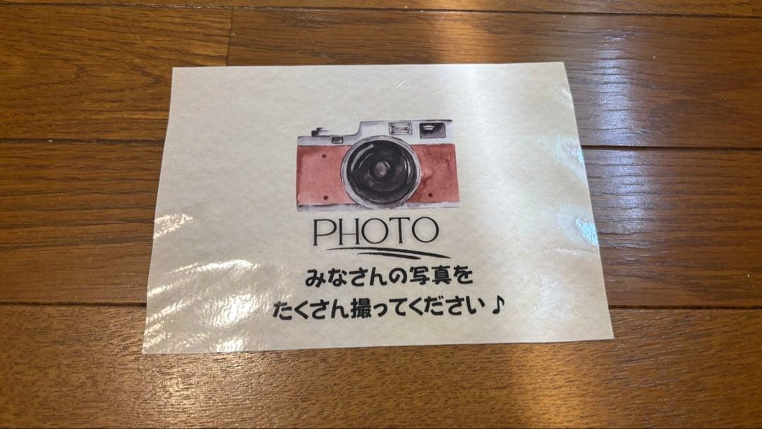 結婚式のウェルカムスペースで使用した「PHOTO サインボード」です。 カメラのイラストと「みなさんの写真をたくさん撮ってください♪」のメッセージ入りで、ゲストに写真撮影をお願いするのにぴったり。 •サイズ:約A4(ラミネート加工済み) •状態:結婚式で一度使用(美品) •デザイン:カメライラスト入り、可愛いデザイン ウェルカムスペースやフォトブースの飾りにおすすめです。 結婚式以外にも、パーティーやイベントなどでご活用いただけます✨ ご希望の方はお気軽にご連絡ください。