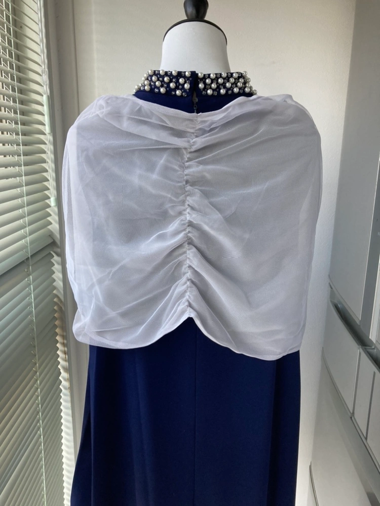 結婚式で一度着用し、クリーニングに出した後自宅保管していたものです。 色は光の加減で青っぽく見えますが、ネイビーが近いと思います。ボレロは手前でホックで留めるタイプです。やや使用感がありますがまだまだ使えると思います。 自宅保管が気にならない方、ご検討よろしくお願い致します。 受け渡し場所は、平日夕方でしたら九品仏駅周辺も可能ですのでご相談ください。 また、他商品とまとめてご購入くださった方には気持ち程度お値引きさせていただきます。