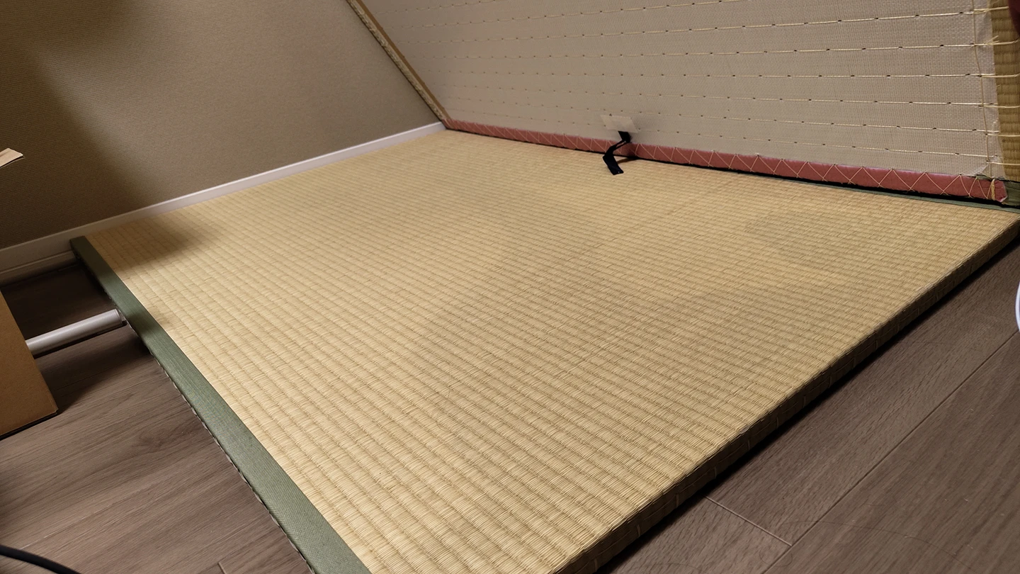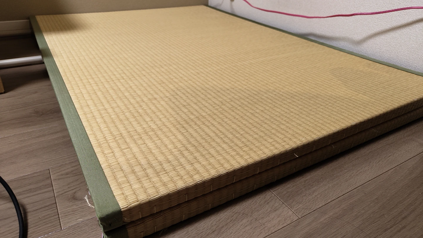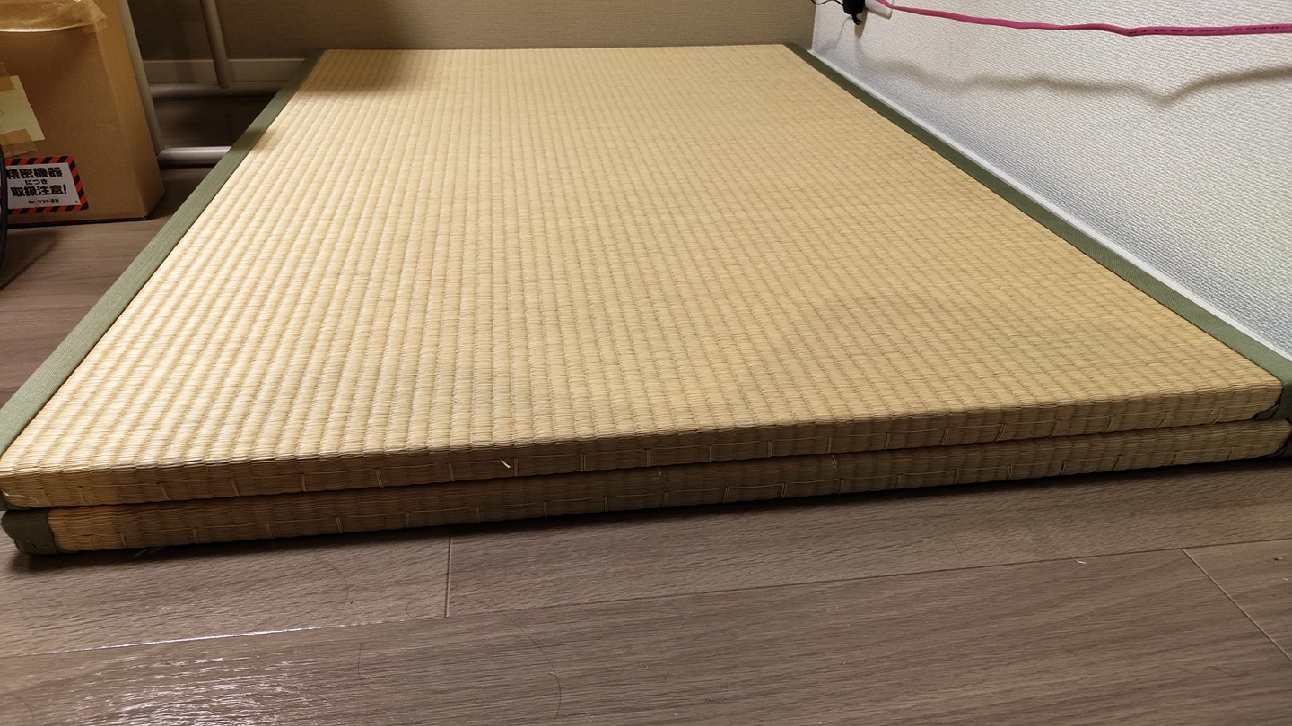 サイズ(1枚):140 x 98 x 3 cm 使用に伴う細かなキズ等はありますが、比較的キレイで状態の良いものです。裏面もキレイ! ※当方ペット飼育、喫煙の環境下ではございません。 子供たちの遊び場に使用していました。 フローリングの床に敷けば、ちょっとごろ寝、休憩、お昼寝もできます。 引越しに伴い、お安くしています。 中古品となりますのでご理解のある方のみの購入をお願いいたします。