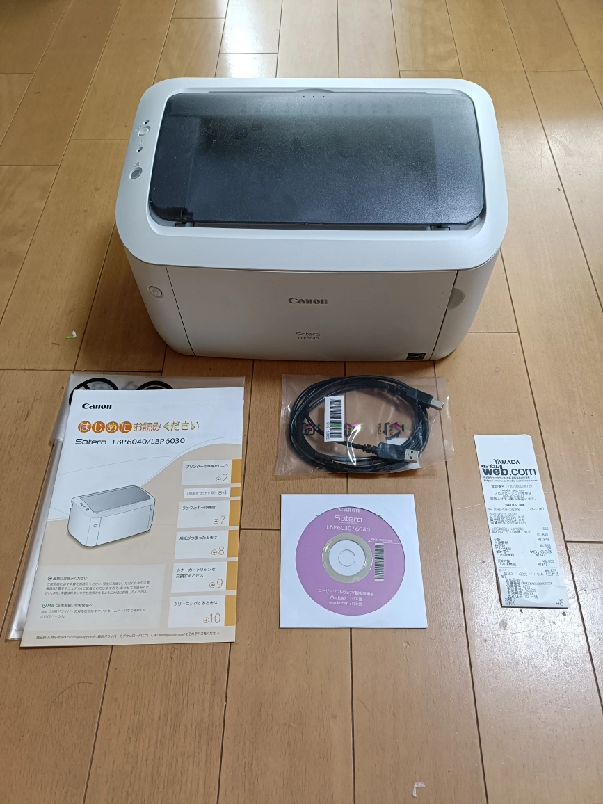 キヤノンのレーザープリンターです 6月に購入して、30枚ほどプリントしました。 急遽カラーのプリンタが必要になったため手放します。 動作に問題はなく、ほぼ新品に近いです。 箱無し。付属品は全て揃っています。 購入時のレシート有り。 【情報】 ブランド:キヤノン 型番:Satera LBP6040 【状態】 使用感少なめ 【付属品】 説明書、CD-ROM、電源ケーブル、USBケーブル